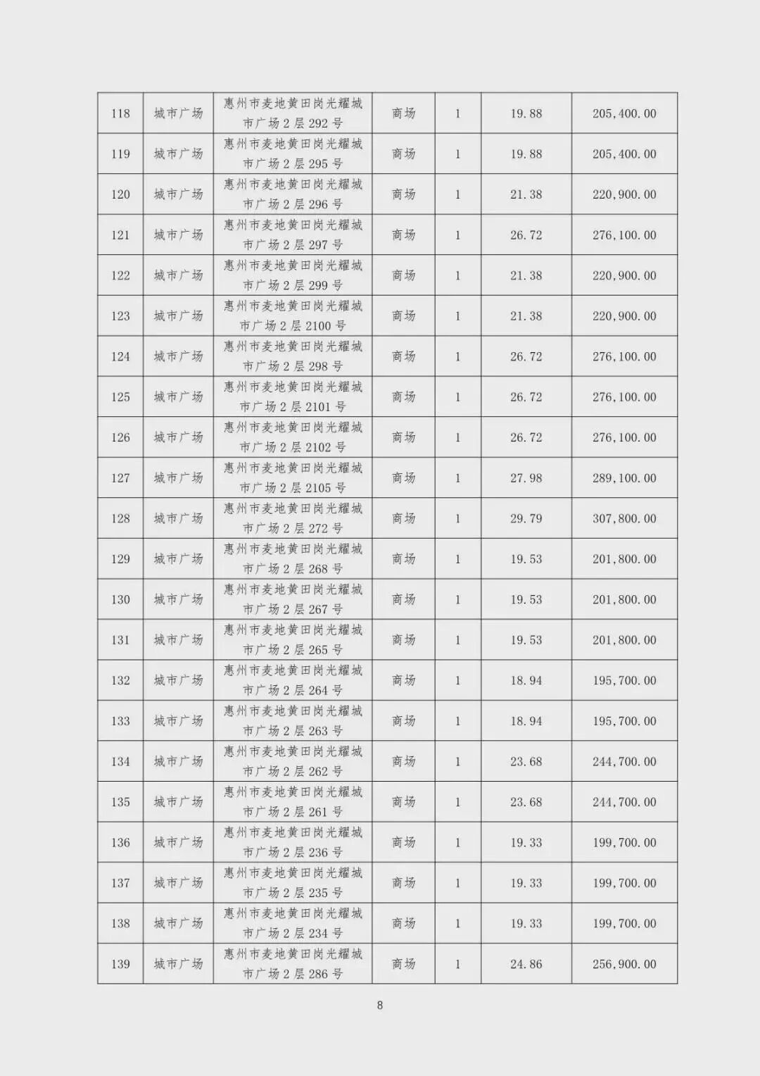 8.光耀集团名下荷兰水乡一期项目商场、办公用房、车库整体处置,以评估价合计22,384,200.00元作为起拍价进行公开拍卖。