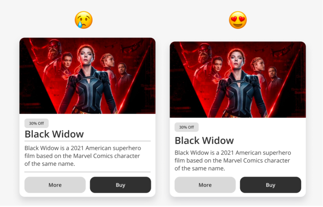 卡片内设计要有层次感,不是随便将信息摆上去,比如上图设计左边就是缺乏层次,看着粗糙。右边增加一些对比,标签小细节就能让页面看着更精致。