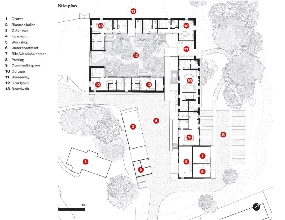然而,该农场却入围2023年MacEwan奖。(该奖项旨在表彰为公共利益而设计的建筑,有12 个项目对环境、社会和经济问题的考量而获得提名。Wraxall Yard因无障碍功能和多项设计全面整合而入围。)