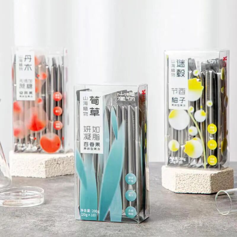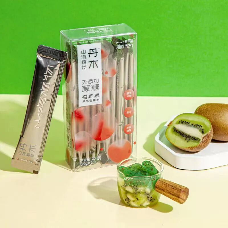 因此,山海植物率先从“饱腹、解酒与美白”三大消费场景切入,锚固市场。针对增强饱腹感、美肤以及解酒等不同的需求,山海植物已经推出三款功能性果冻产品:「山海植物·丹木」、「山海植物·荀草」及「山海植物·谜毂」。