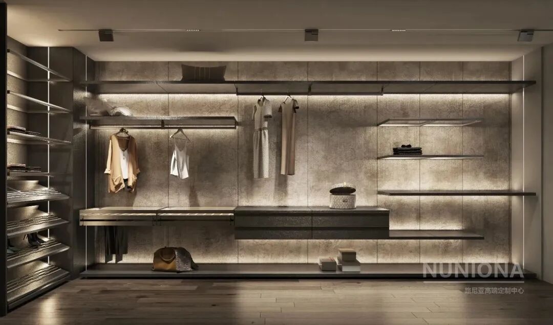 蔡学斌先生:考虑的主要是材质颜色的运用和穿插,打破常规定制材质,将金属、皮革、玻璃、灯光、木皮、板式、石材合理运用到我的作品当中,既不突兀,又协调统一。