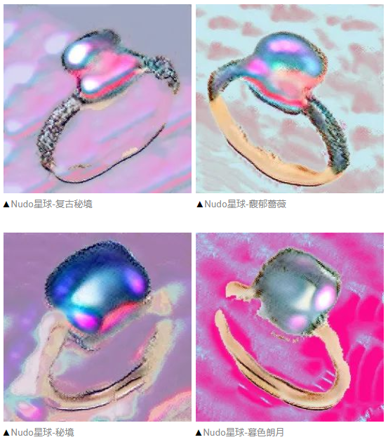 此次合作数字艺术家孙博涵所创作的《Nudo星球》数字藏品也以经典Nudo系列为原型,巧妙甄选Nudo原石的稀有宝石色彩,还原其经典设计造型,同步提取米兰地域标志色彩,经精心解构转化为缤纷抽象色域,形成10,000幅独一无二的样本。每个专属作品的命名也充分结合自然元素,从米兰意境中汲取灵感,虚幻梦境与现实相互映衬。运用全新载体形式将奢华珠宝呈现于梦幻虚拟世界中,华美雅致的实体美学延续至线上领域彰显其先锋格调,释放栩栩如生之动人美感。为Nudo系列焕发全新活力,无尽绽放宝石璀璨光芒,引领品牌发展元宇宙先锋艺术趋势。