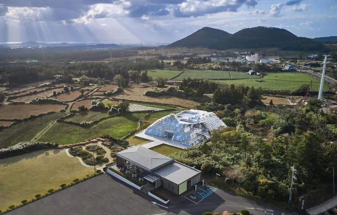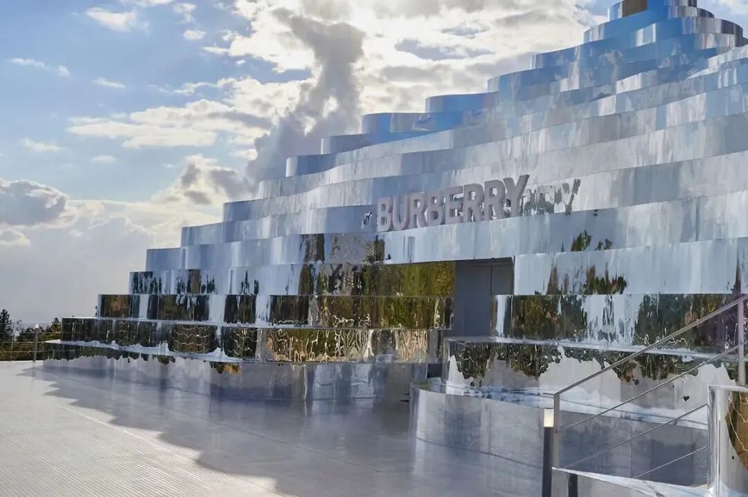 英国奢侈时装品牌Burberry为其位于韩国济州岛的快闪店创作了一个地形镜像雕塑。 这家商店的轮廓具有起伏的光泽和表面,由聚碳酸酯镜面材料制成的反光立面吸引了远处游客的注意力,形成了反映周围群山的地形建筑。