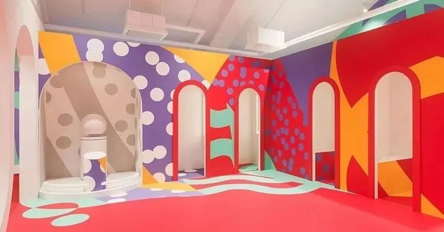 进入店里,整个空间就像是一个波普艺术的大型展览,灵感来自阿姆斯特丹波普艺术家Karan Singh设计的「2018青春露KARAN 限量版」神仙水瓶身。高饱和度的颜色,具有强大的视觉冲击力,加上不规则的图案,让整座建筑仿佛成为了一个梦幻美妆世界的入口。