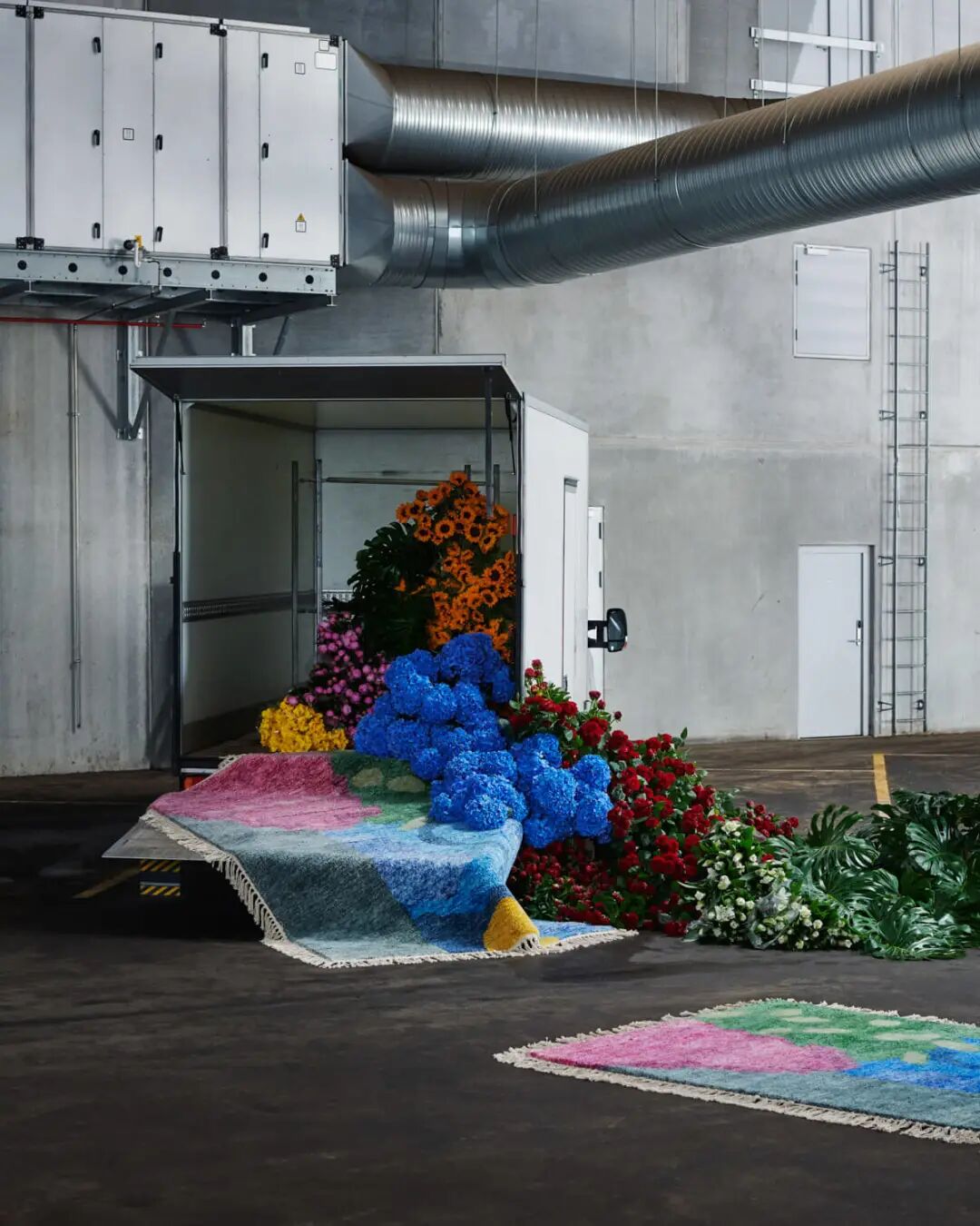 Blur and Noise,一个饱和的地毯系列,灵感来自 TABLEAU CPH 的起源——花卉市场。鲜花大量堆放,整体几乎可以看作是一个大型装置。地毯或“编织图像”是根据花卉装置的数字扭曲图片创建的。
