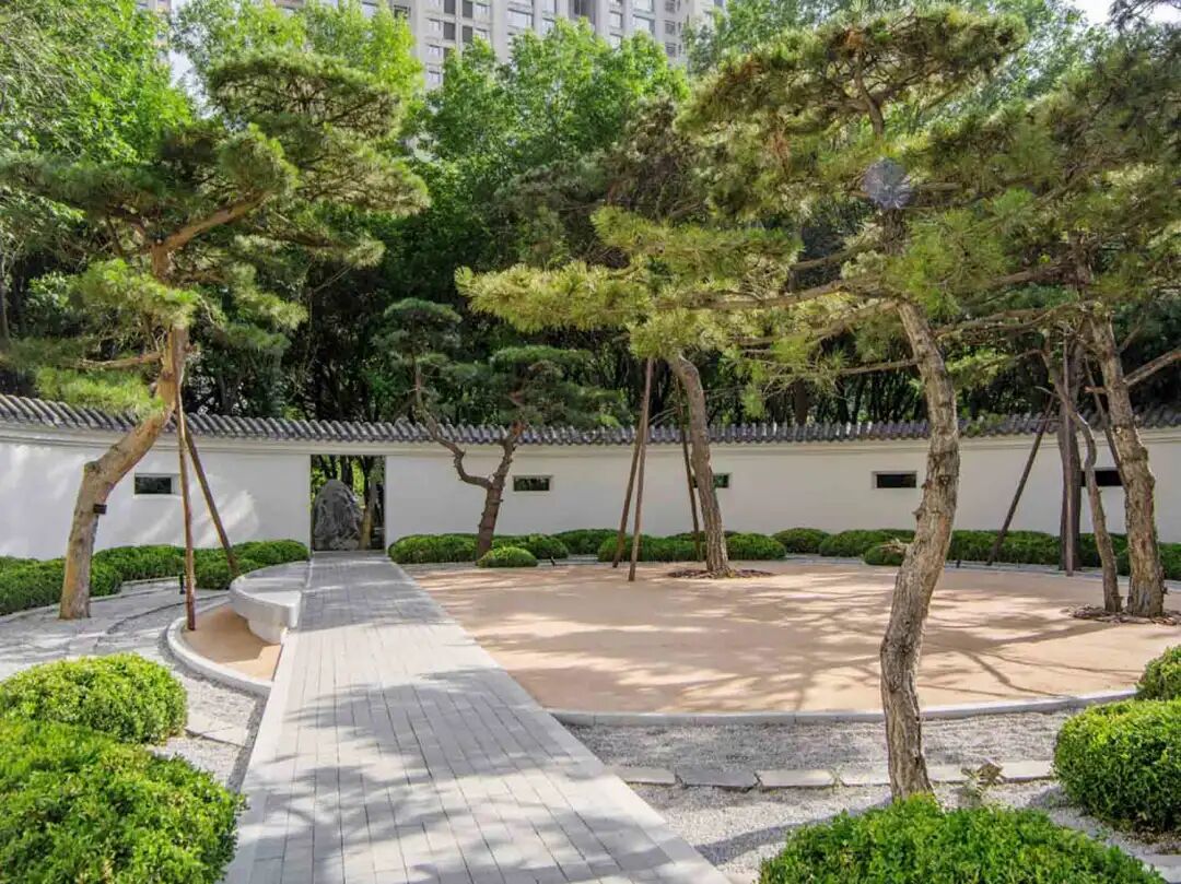 这个地方在北京朝阳公园的北边,场地建筑有四座有人居住的住宅楼、五座无人居住的塔楼、一个俱乐部和多个功能状态各异的古典中国和罗马门楼的混合体。现有的景观也是功能性和功能性空间的大杂烩,包括皇家园林的比例复制品和人造森林。