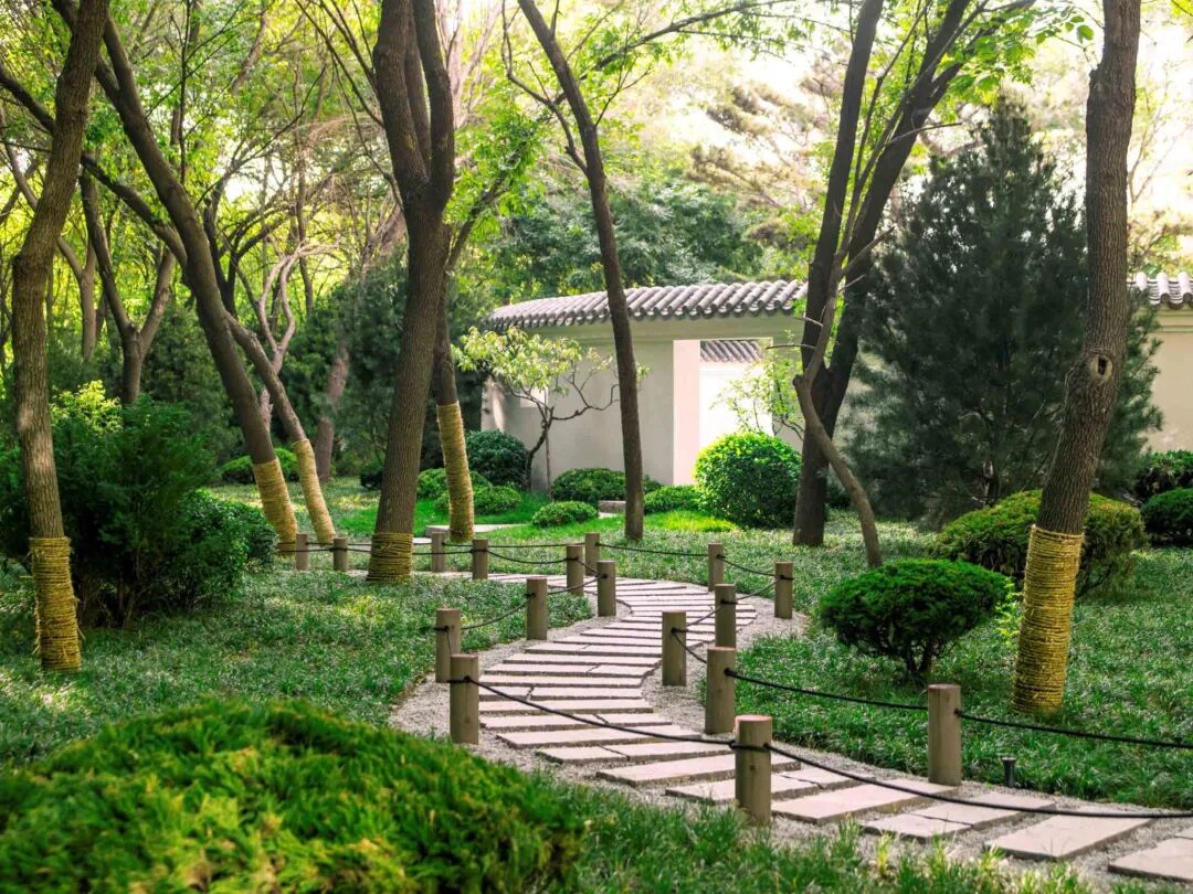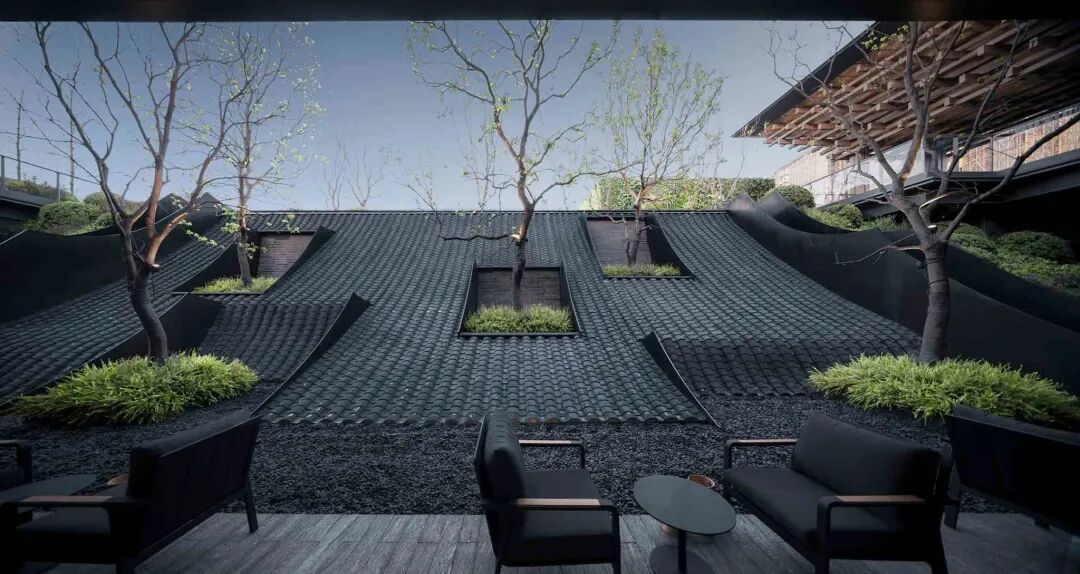 绍兴的地形造就了这个大胆的住宅花园,设计师将蜿蜒的运河和古镇的桥梁,地区的乡土和水景化为己用,地区的传统屋顶使用重叠的砖瓦,许多水景也采用了相同的设计。弯曲的装置和有目的的景观营造出角落和走廊,呼应了沿着河岸和老城区迷宫般的街道漫步的氛围。