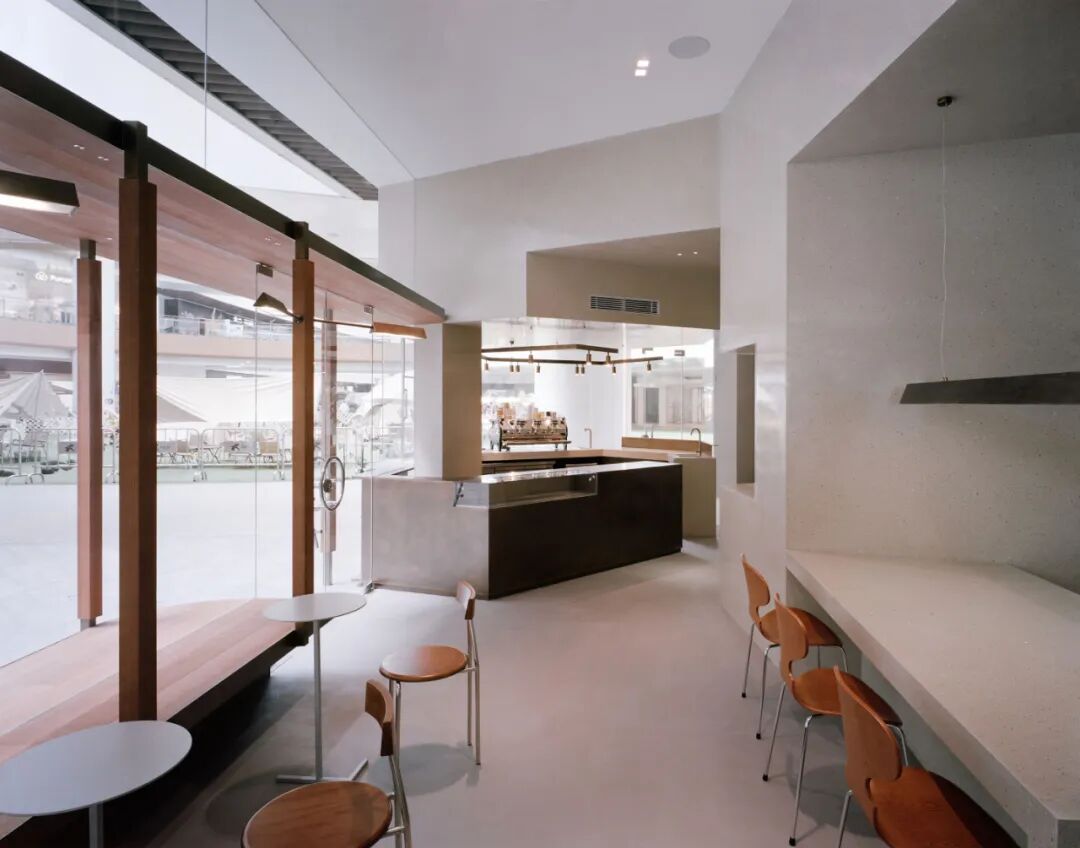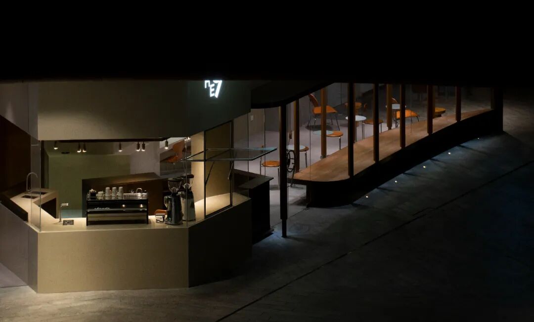 The Ninth 咖啡馆首店位于上海长风大悦城一楼,处在商场中心的户外中庭的一角。全室外的气候、中庭的广场尺度以及带有街道感的流线为项目带来了完全城市性的特别氛围。