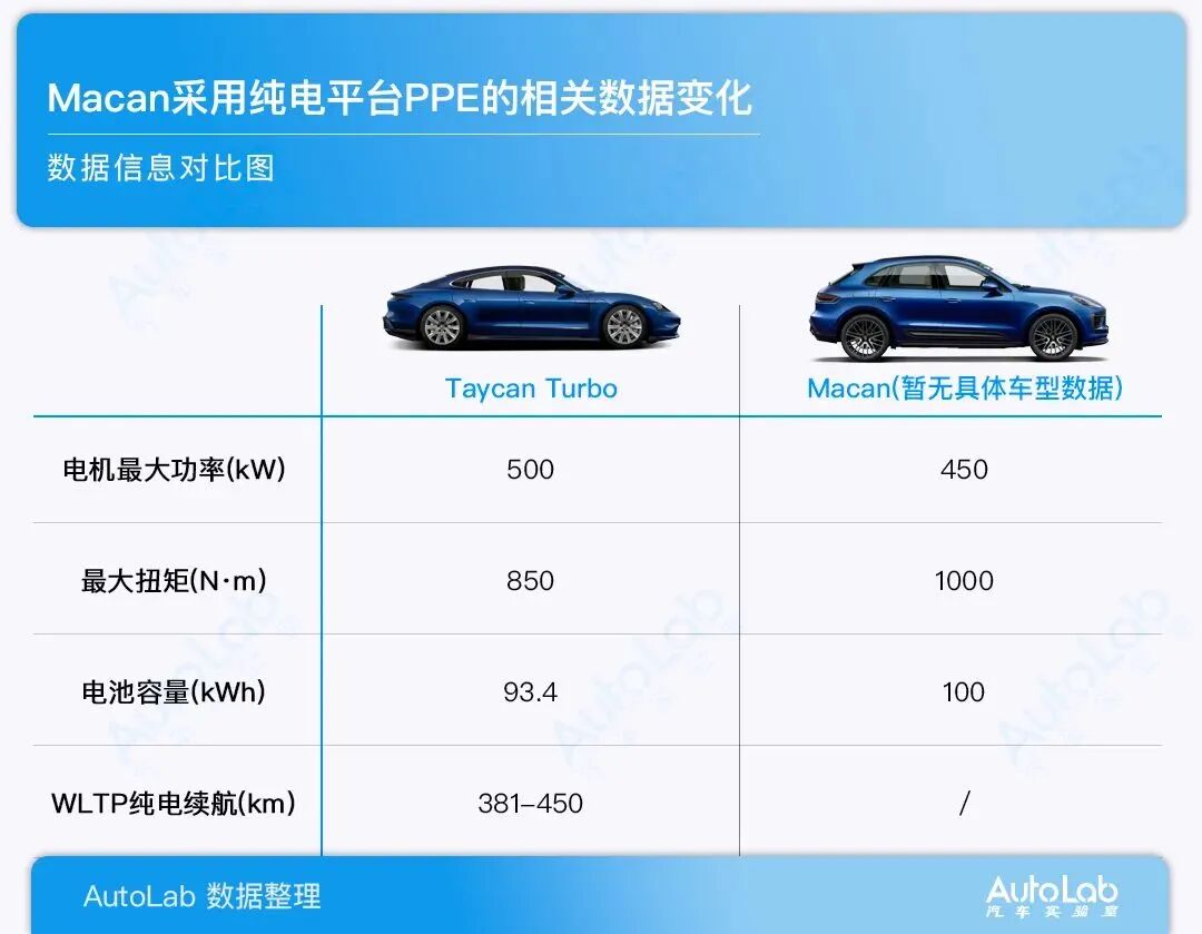 布灵根据目前已知的信息,整理了搭载PPE纯电平台后Macan的一些简要的数据变化。