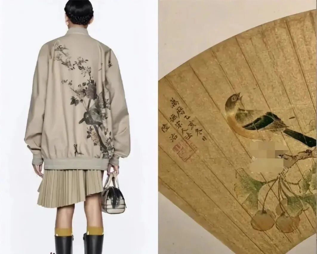 但在商品详情中,Dior 称其为标志性「Jardin d'Hiver」图案,其灵感来源是 Dior 品牌创建者 Christian Dior 一间名为「冬日花园」的温室。工笔花鸟画是中国传统绘画重要流派之一,使用中国特质的毛笔、颜料作画,注重线条的运用,区别于西方强调光影质感的传统油画。