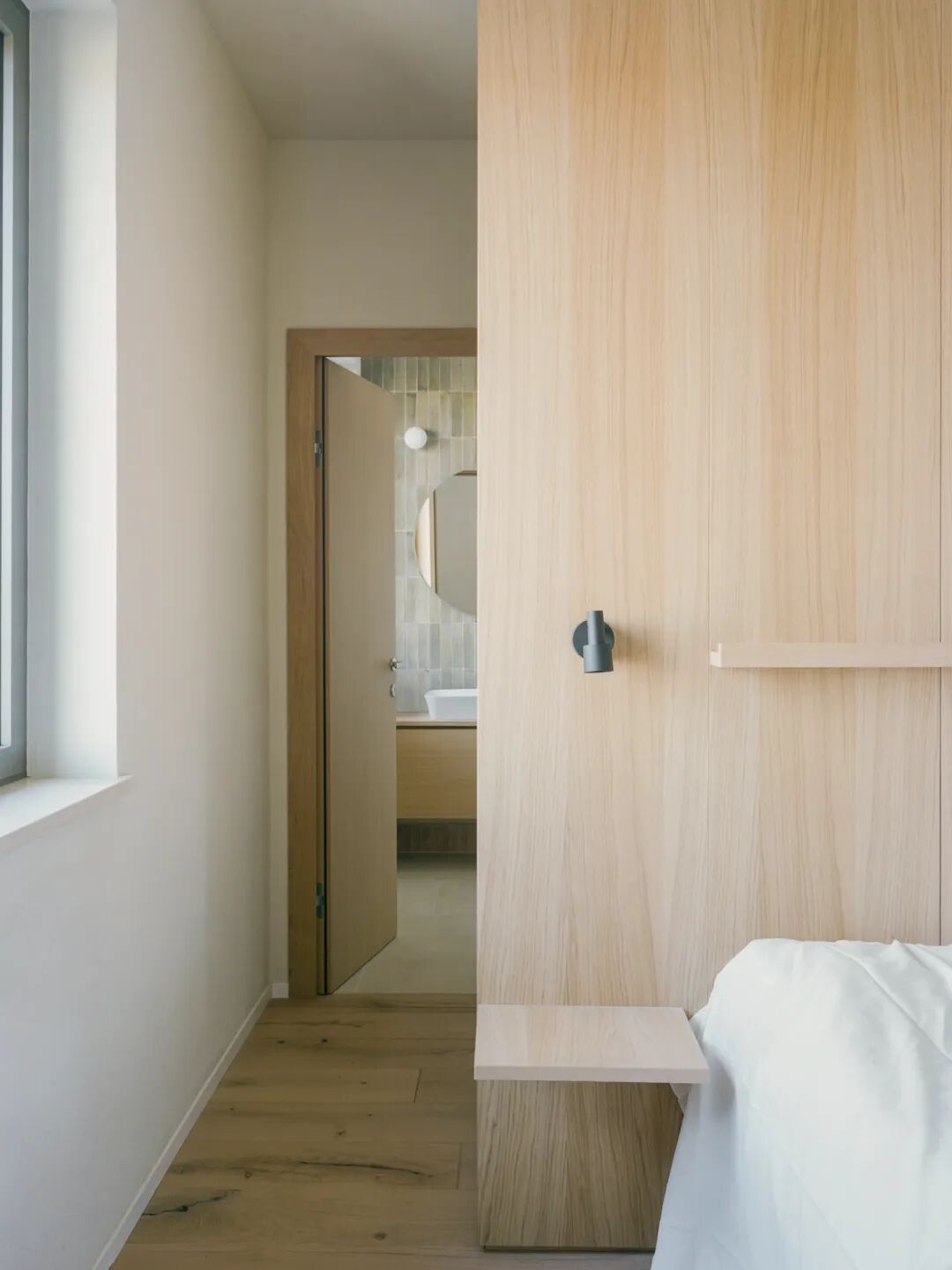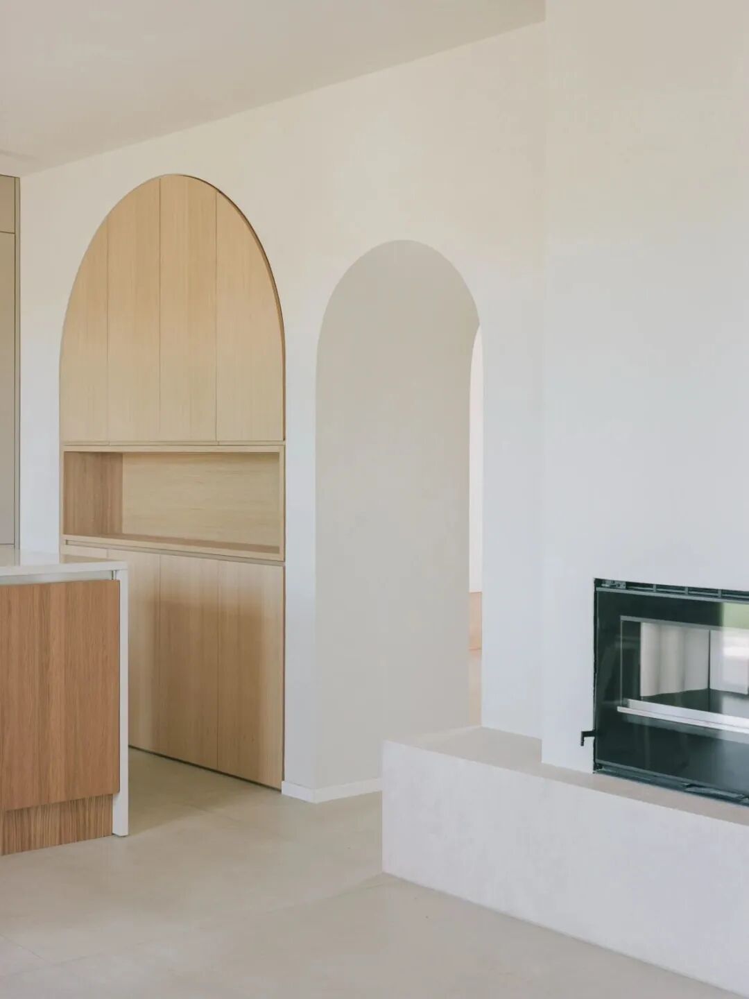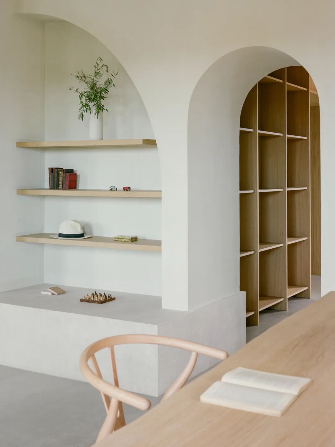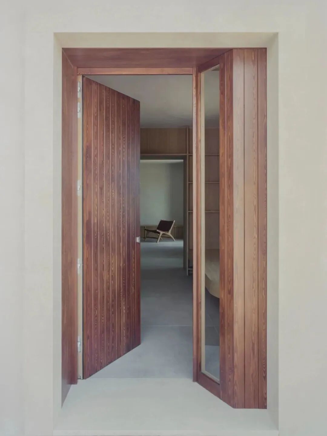 这些房间提供了一条连续的探索家庭的路线,由于改进和新开发的连接空间,共享空间与私人空间共存。步行在第一层的露台结束,其中一个在南侧的设计过程中开放,在那里人们可以享受周围环境的灯光和色调。农舍的内部和外部表面都以使用清晰的几何形状和当地天然材料而著称。石灰华窗框、赤陶外铺、拱门和内部的木制家具就是证明。