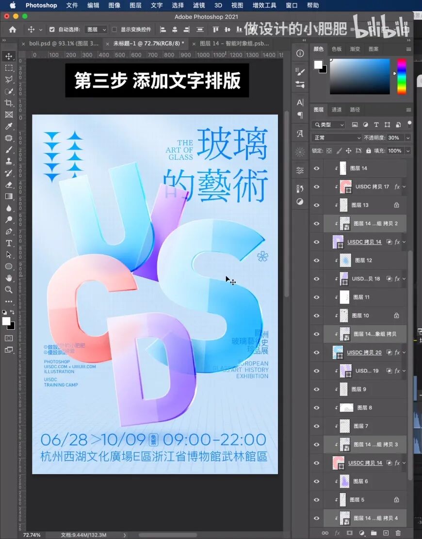 大家好,我是做设计的小肥肥,今天就带大家来做一张晶莹剔透的玻璃效果海报!赶紧上手学起来吧~