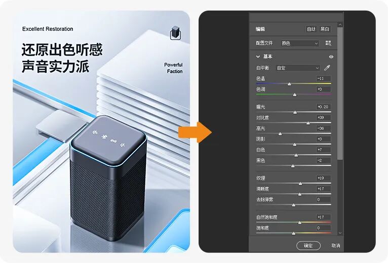 最后加上排版,ctrl+alt+shift+e盖印一层,添加camera滤镜,进行整体润色,参数可以参考下图~
