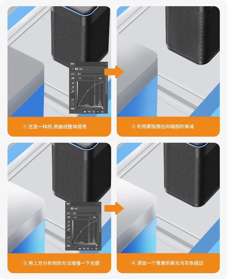 01.接下来绘制产品投影,因为场景是亚克力微质感,所以产品放置上去会有倒影,故此处我们需要添加倒影和根据主光源方向添加投影