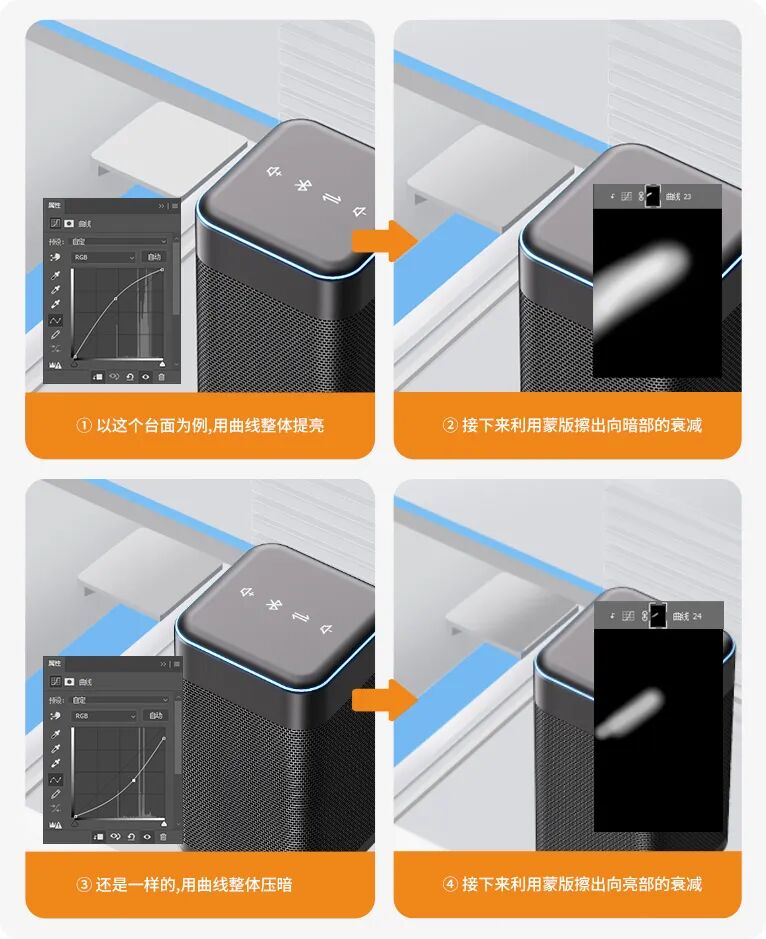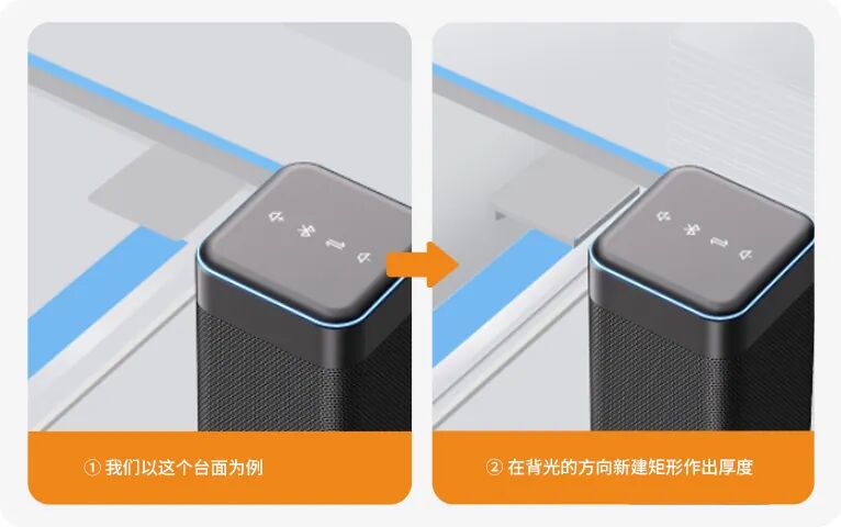 05.同样的方式把右边台面也修改成圆角,增加前后层次感