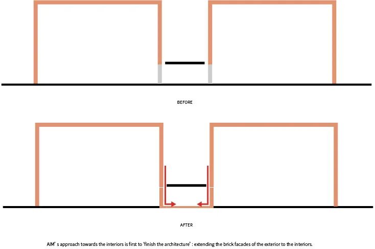 将砖砌立面延伸到内部空间 © AIM Architecture