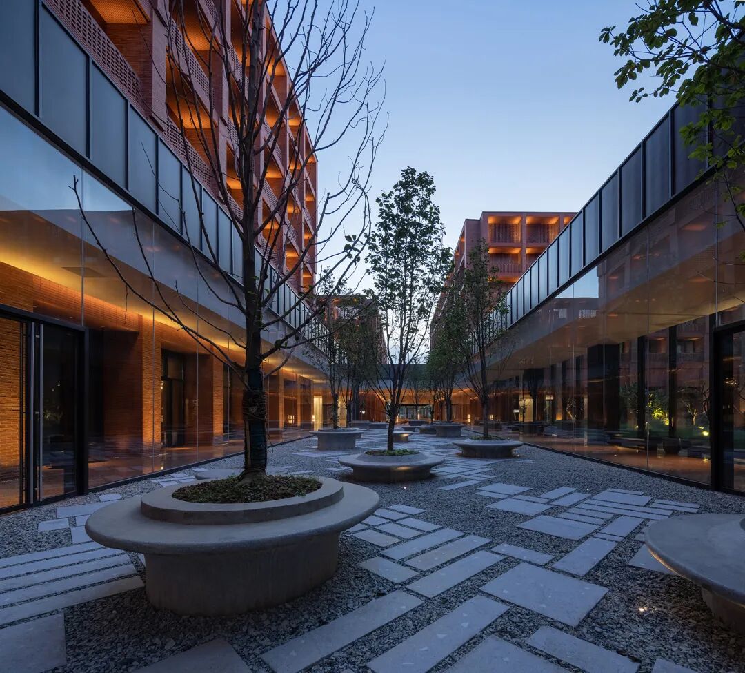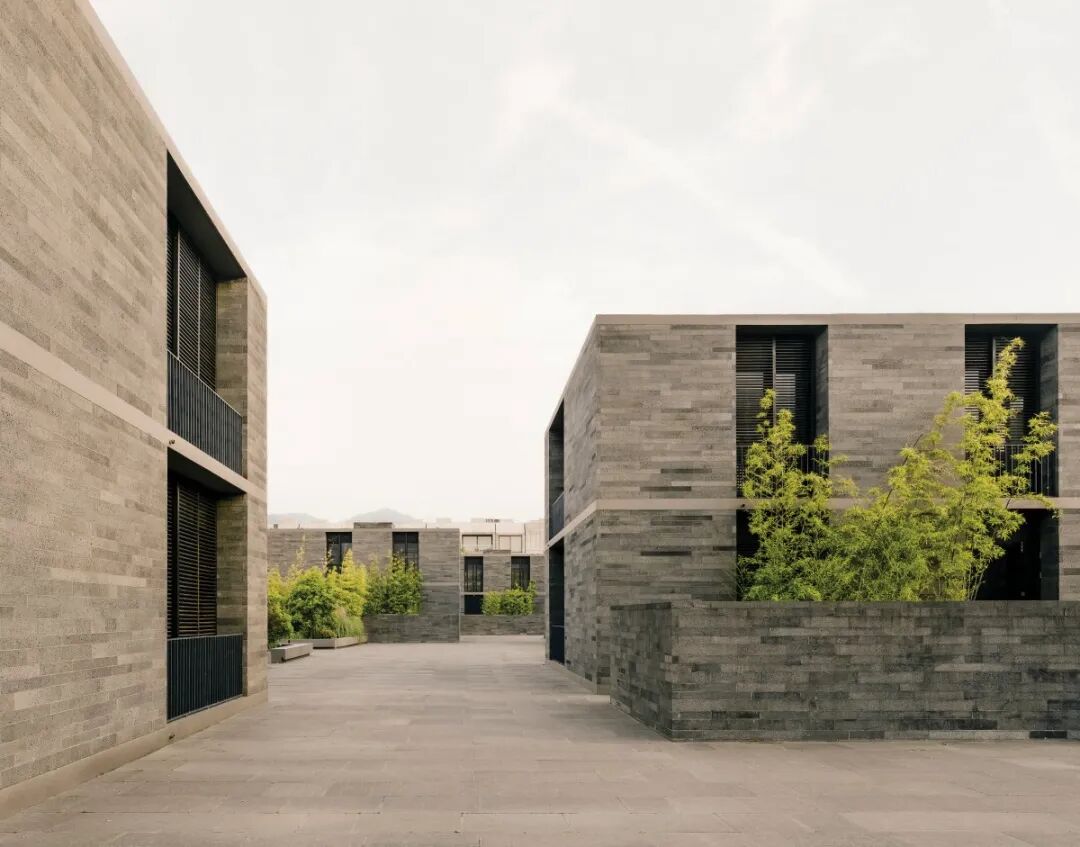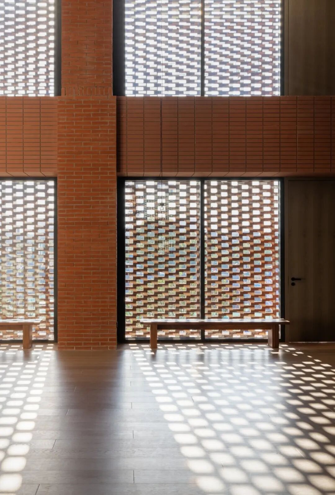 David Chipperfield 建筑事务所在景德镇建造了一座剧院及酒店综合体,该建筑群是旧瓷器厂区域改造项目总体规划的一部分。新建筑的设计参照老瓷器厂的工业建筑风格。所有建筑均凸显砖块元素,与旧仓库建材相呼应。但新建筑中使用的砖块更注重装饰功能,多以镂空隔断的形式出现。