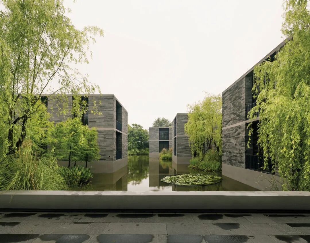 位于杭州郊区的西溪国家湿地公园,兼具人工景观和自然景观。景观、建筑和水之间无处不在的关系是西溪的特色空间氛围,并融入到新公寓的设计之中。