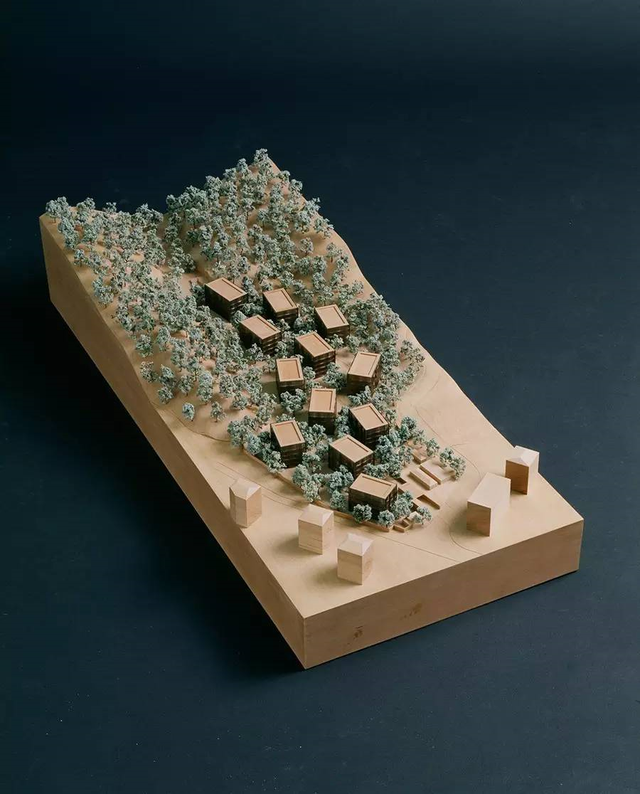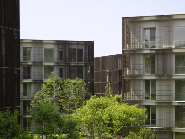 十二座单独的建筑体量以一种松散的方式排列,以保证每栋楼之间的充裕的室外开放空间。它们的排列顺应了地势,并以不同的角度放置,使景观自然地渗入其中。
