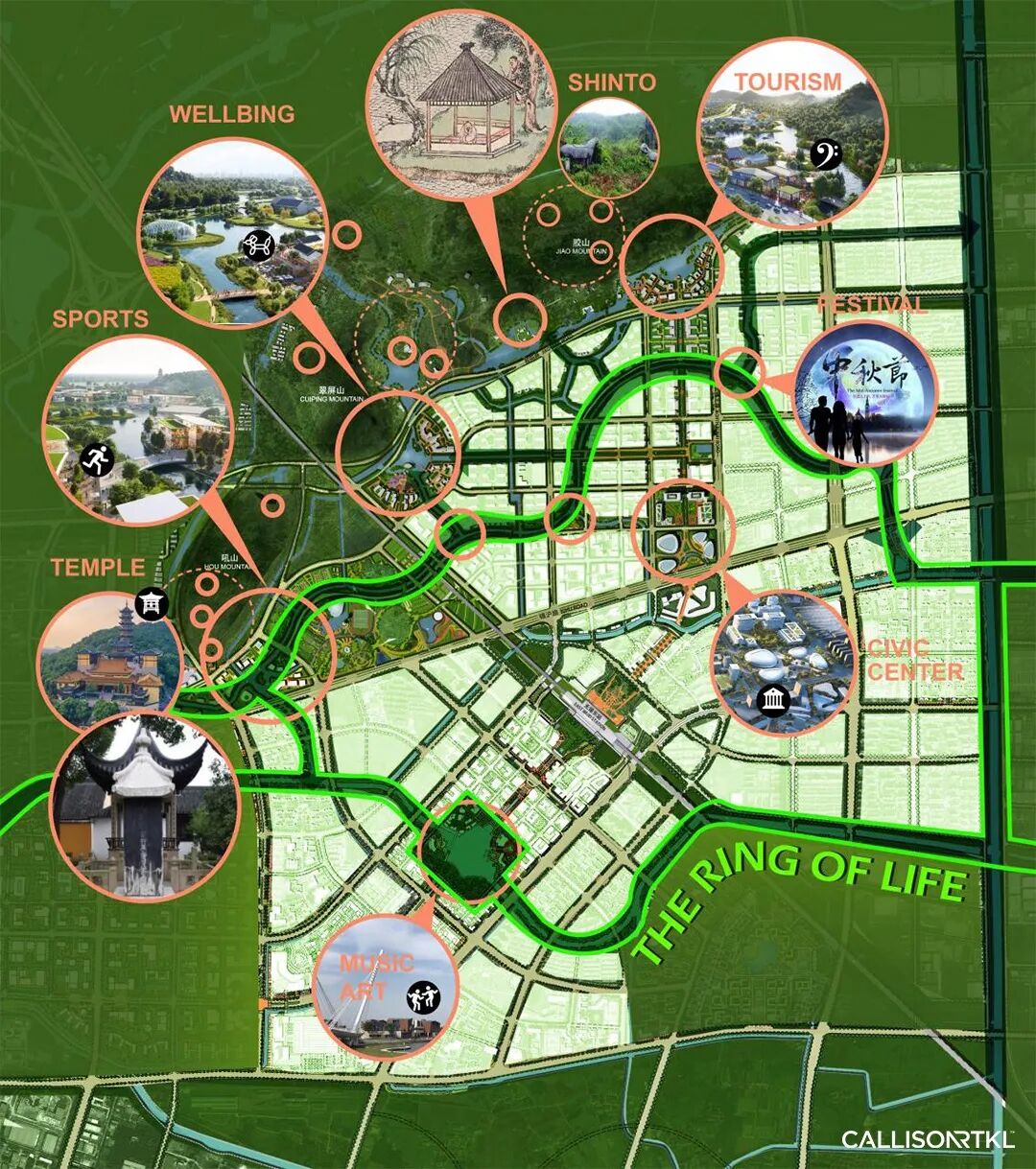 未来:环城生态健康廊道连山通河,完善生态格局,健康生活示范