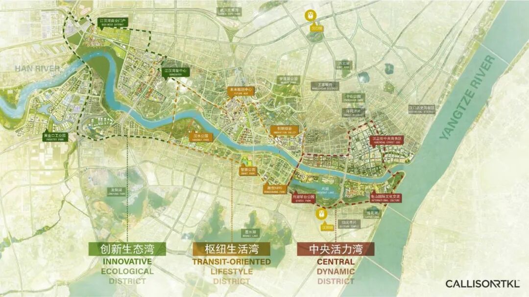 武汉的城市变迁,产业迭代已使得大片的工业区正在经历保留、保护、转型、转性的不同阶段,大量的工业用地开启了腾退、转型升级的功能优化进程。目前,武汉已日趋成型的功能新格局,导致已有的城市中心区、老工业区和杂乱的居住区迫切需要改造提升。在这一背景下,2020年底,应武汉万科的邀请,CRTKL加入了武汉市自规局组织的“汉江两岸整体规划”项目的编制工作中,与武汉市规划院共同完成这一重要的城市更新项目。