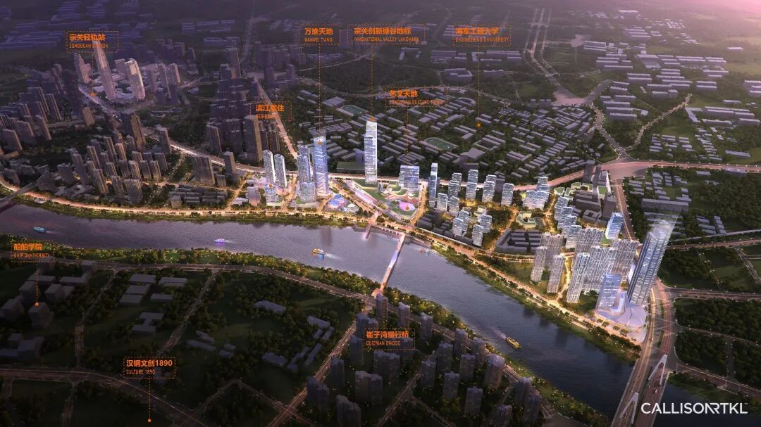 武汉三镇中的汉口与汉阳被汉江一江两隔。且三镇分政,各司其职。如今,北汉口以自明清以来商客聚集的汉口码头为初起,发展成以汉正街商贸中心,宗关TOD枢纽中心,汉江湾副中心为代表的新型工商市镇。南汉阳以1891年张之洞督办的汉阳铁厂为发源地,发展成以龟北琴台国际交流中心,汉阳1890创意中心,黄金口创新孵化园为代表的新型产业文化重镇。随着产城融合的城市发展,汉江已与汉口,汉阳融为一体,又再次回到1800年前的“汉口汉阳本是一家”的城市格局。