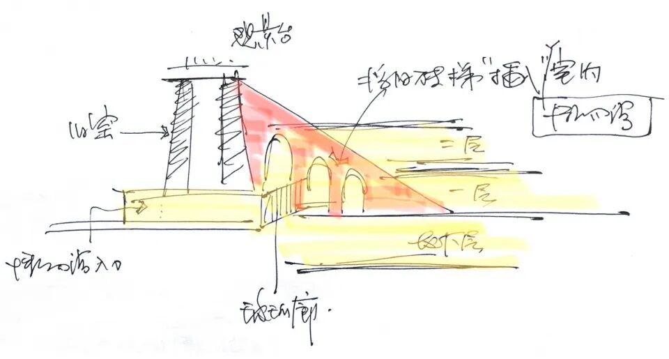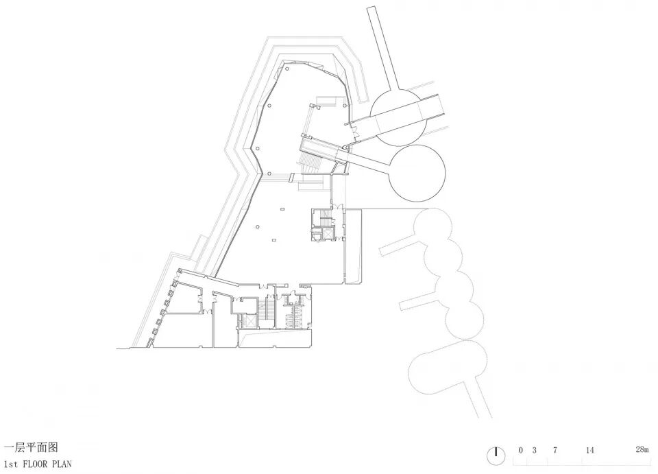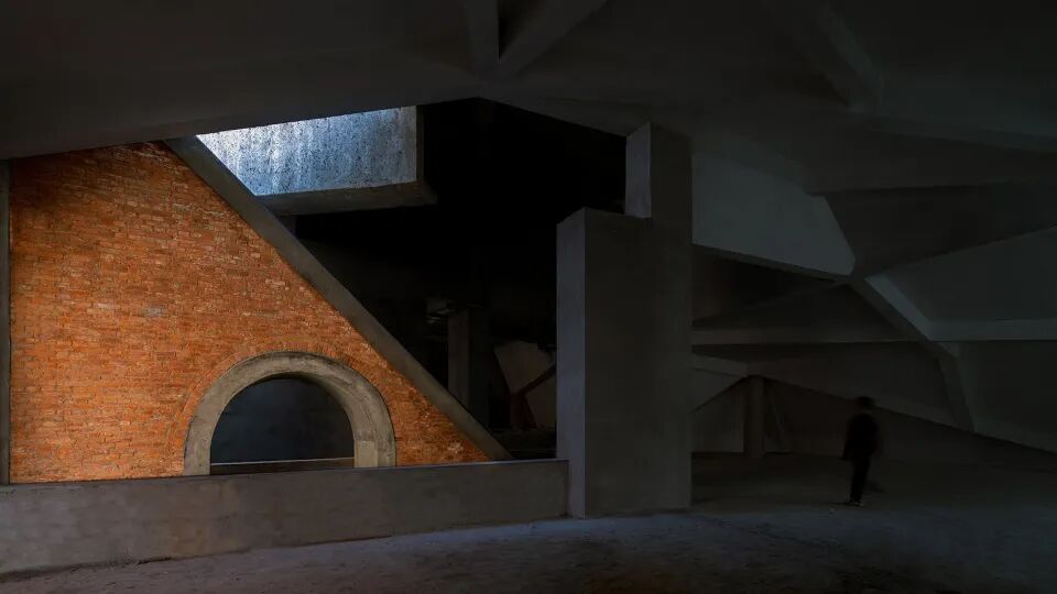 其中一个旧窑的出灰口被设置为博物馆的主入口,保留的一个送料旧砖梯则“插入”博物馆中,使得残缺的矿坑、破旧的石膏窑及全新的博物馆共同组成了一个有机的整体