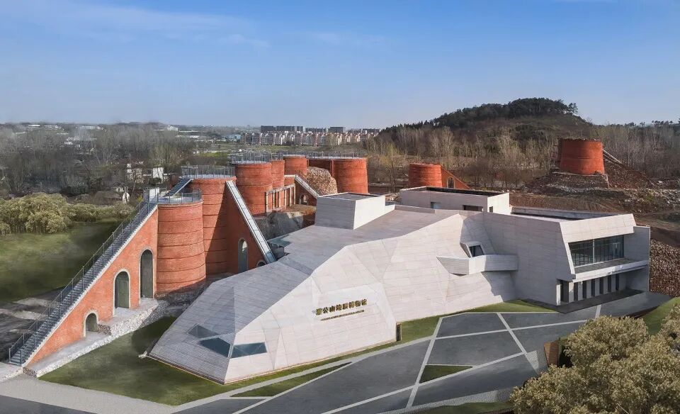 李保峰教授工作室新建的博物馆与既存石灰窑整合在一起,将延绵的旧窑群整体作为地质公园的标志性大门,窑顶被改造为观景平台。