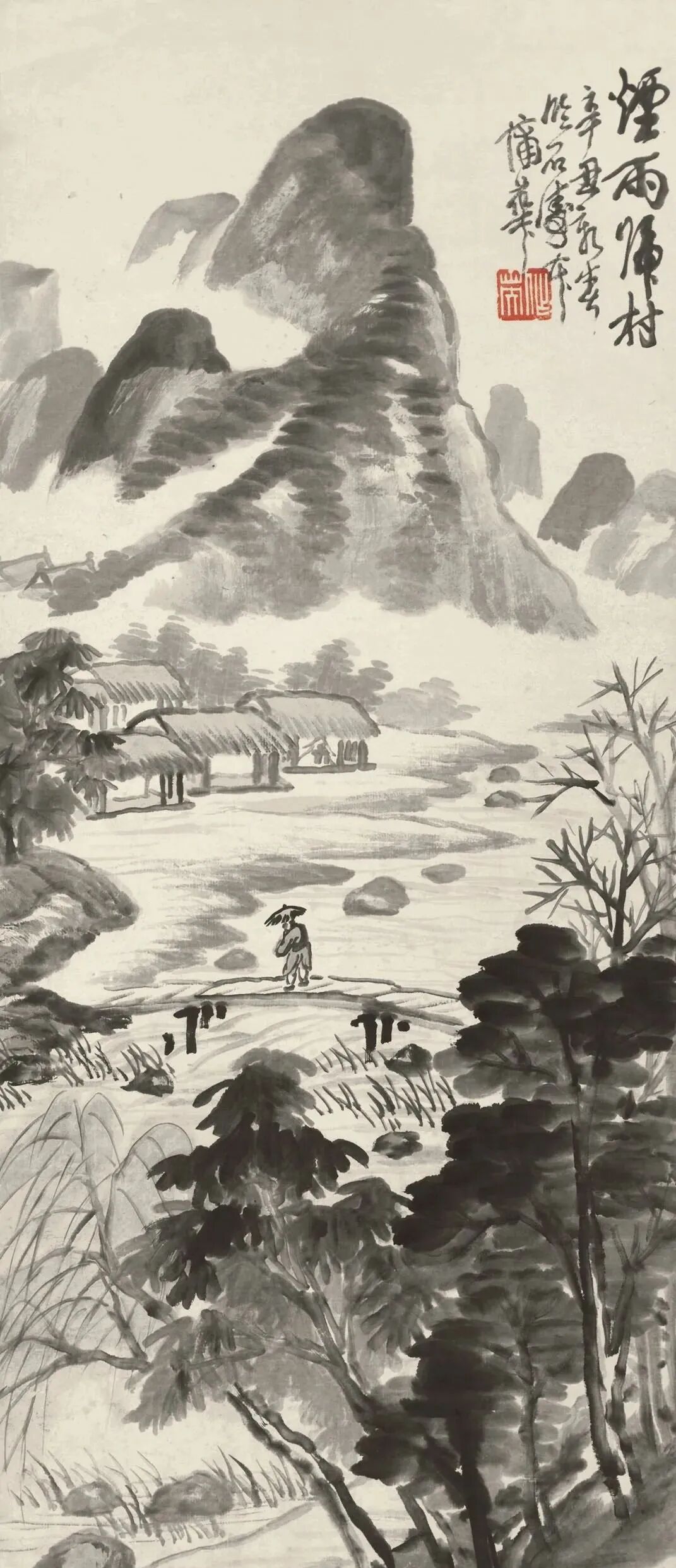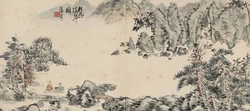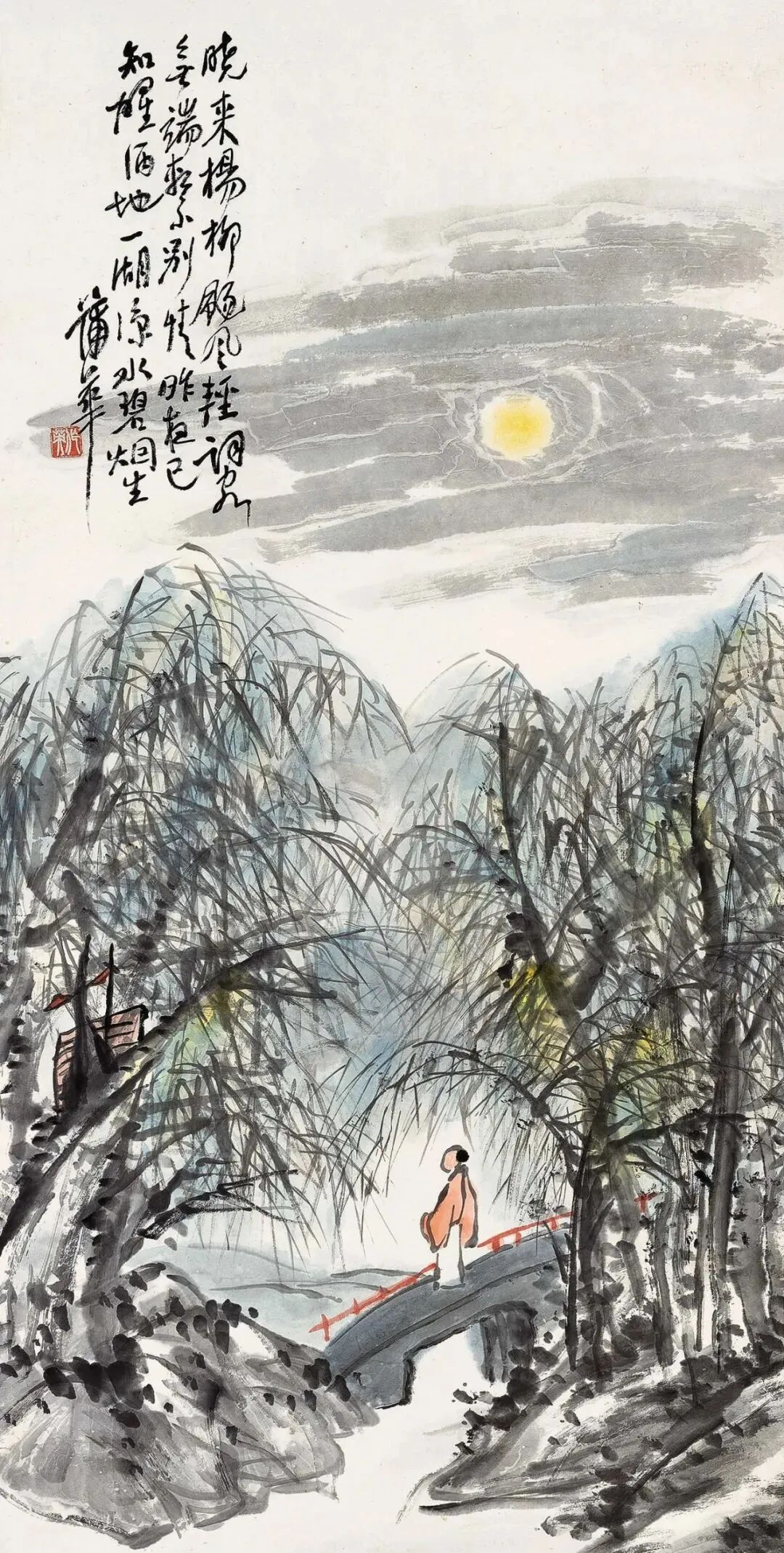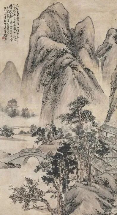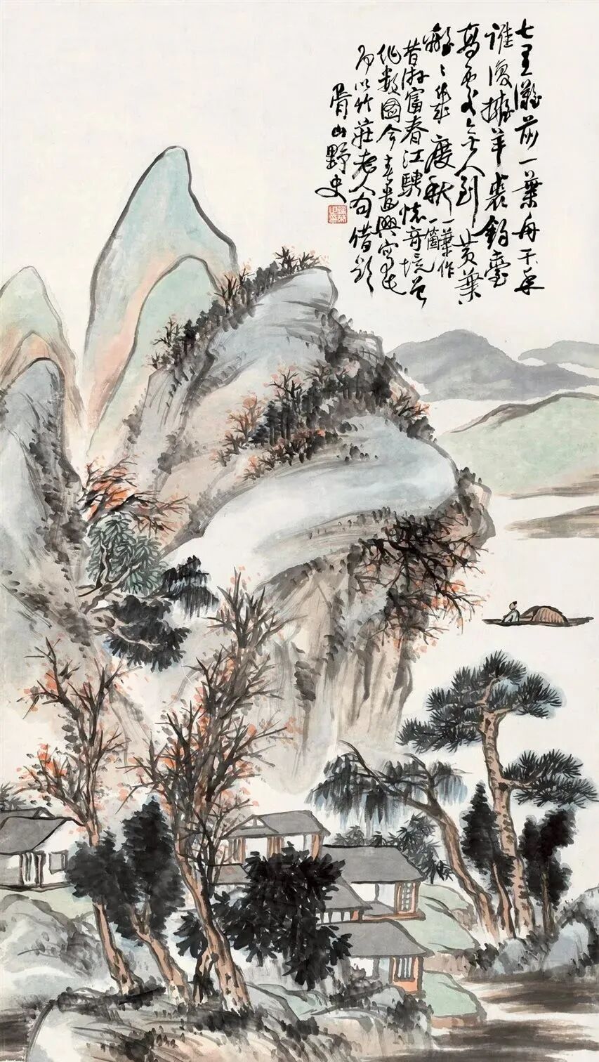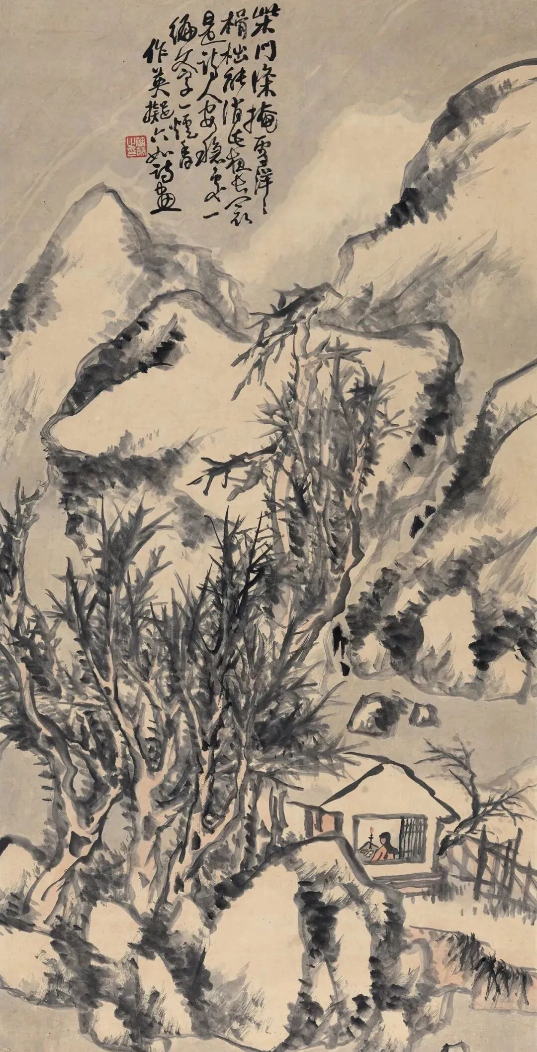 蒲华山水画粗笔写其意,化皴为擦染,树法变粗简,大点加其苔,多以水墨为之,兼作设色,给人一种雄强野逸之感,于凌乱中求次序。关于蒲华山水画的师承问题,邵洛羊曾指出:“其山水树石,纵放恣肆,水墨淋漓,取法于石涛、石谿。