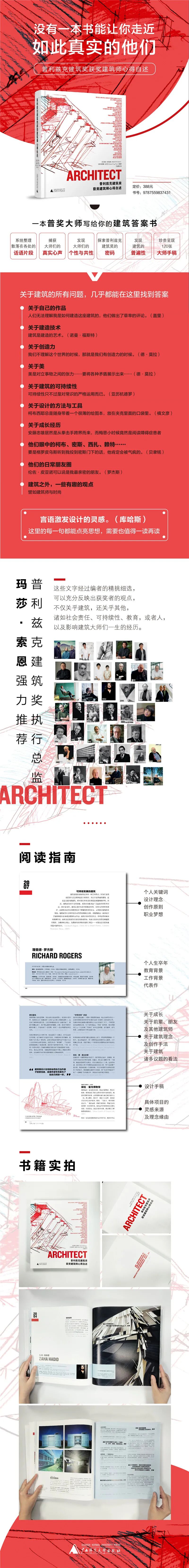 本书是第一本记录普利兹克建筑奖获奖者言论和著作的书,在精选文字内容的同时,甄选出850多张代表了他们的主要作品的图片。书中建筑师按照获奖时间的先后顺序排列,以2017年为起点,一直追溯到普利兹克建筑奖于1979年的首次亮相。
