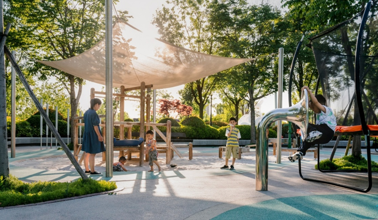 “极目所至,俗则屏之,嘉则收之” 。视线越出景观用地的所及之处,使地块周边的环境、区域内室内的环境,均纳入考量。有帮助的加以善用,不适合的便进行屏障。更越出当下,将叙事交给郑州分明的四季,让流转的时间在这里具象的沉淀,分时在市集绽放、成荫、留香,成为集体记忆的索引。