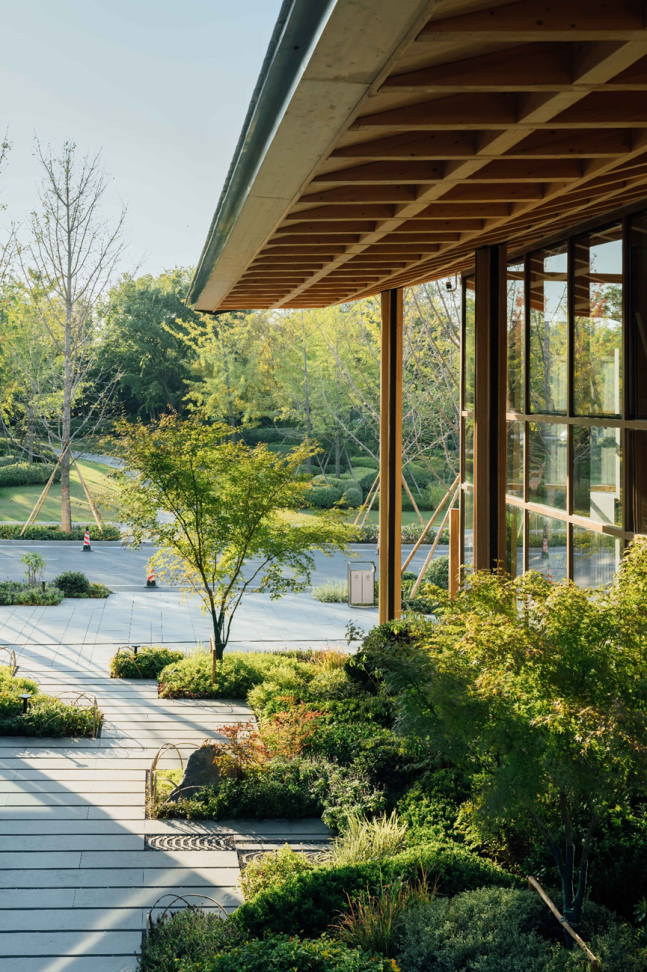 腹地有限,动线交织,绿植难以成林成片,却又亟需向硬质空间争取话语权,弱化建筑与铺装的坚硬之感,迎接拜访者来自各个角度的观赏。