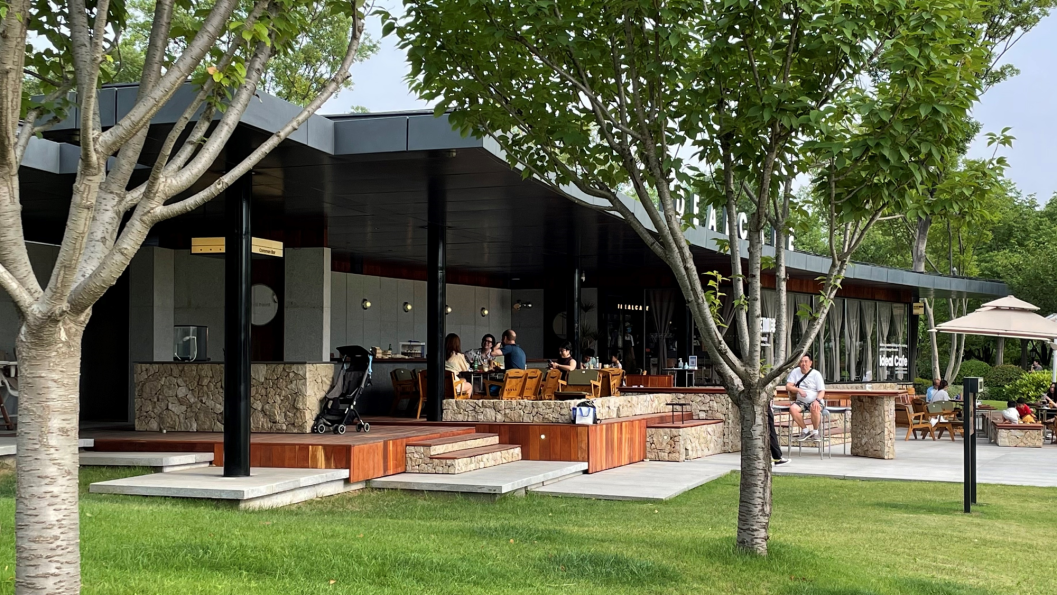 鉴于普罗市集“种子”与“样板”的定位,虽然是一片独立用地,却势必要与周遭环境相生相融。厘清项目策划中的位置之后,创造合理有机的共生共荣环境,成为景观方面呼之欲出的解题思路。在理想国社区,自然与公共空间的融合已随处可见,商业长在公园,餐厅坐落湖畔。