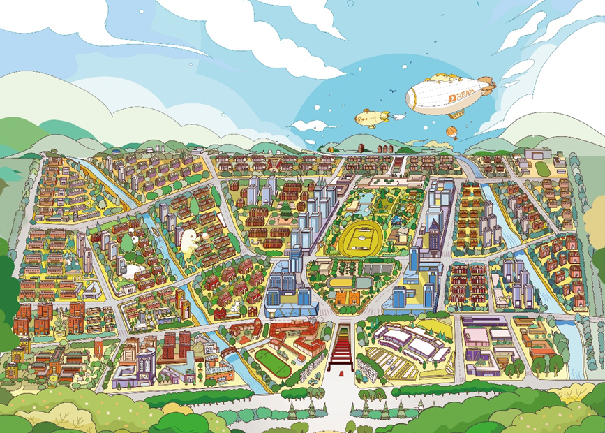 2013-2022十年时间,4平方公里的普罗理想国,逐渐落实了梦想社区的版图。地处郑州市与开封市连线中央,理想国从破败荒废的农田,成为一座集生活、教育、医疗为一体,社群生活丰富,自然环境优美的迷你移民城市。