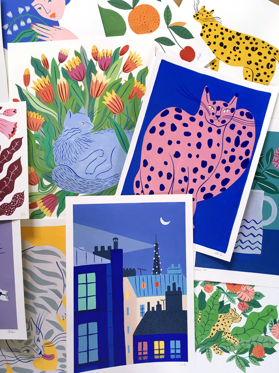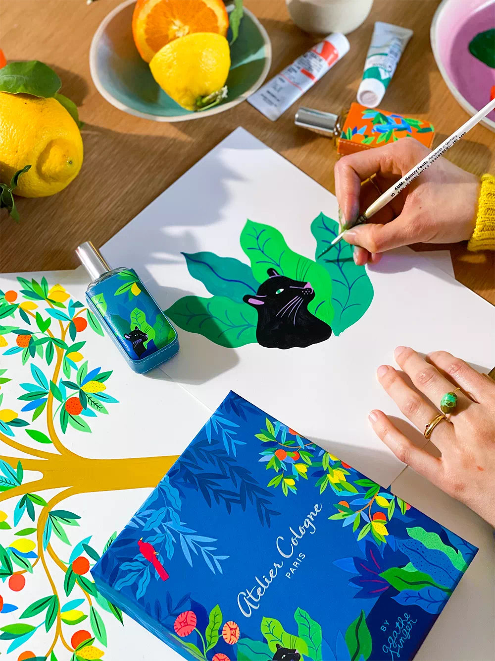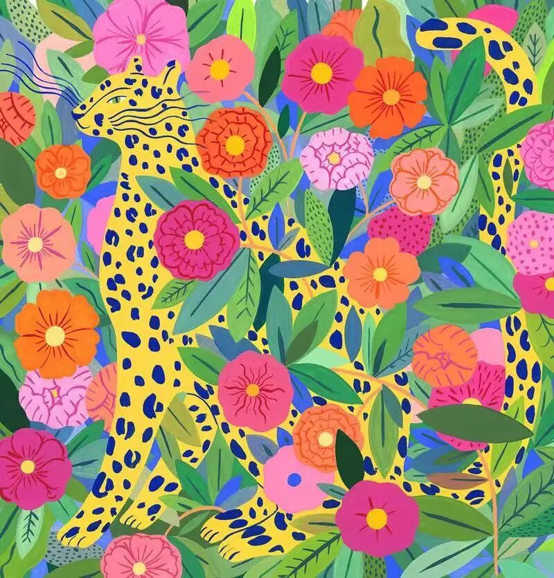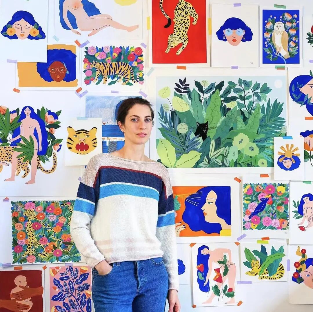 Agathe Singer深受大自然和女性美的影响,从马蒂斯(Matisse)、卢梭(Le Douanier Rousseau)和卡罗(Frida Kahlo)等艺术家的作品中获取灵感,转化出极具个人风格的创作——丰富多彩的色调,大胆圆润的线条,生机蓬勃的鲜花、动物和女性。
