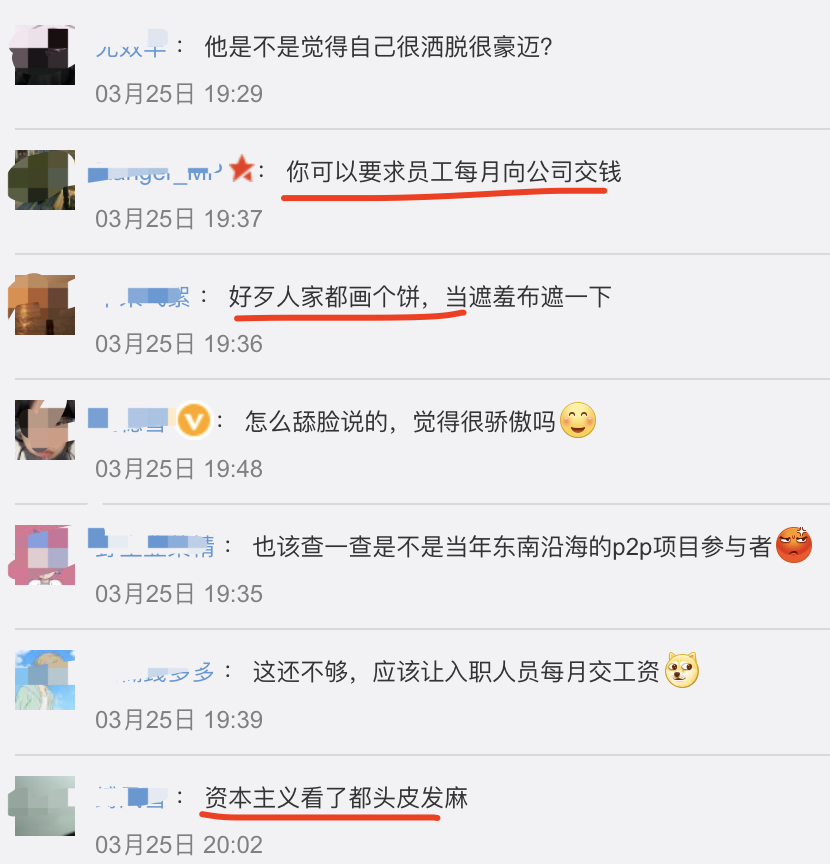 网友吐槽称把压榨说的这么清新脱俗,我有梦想,我家里还有钱,我自己直接开个公司不好吗。