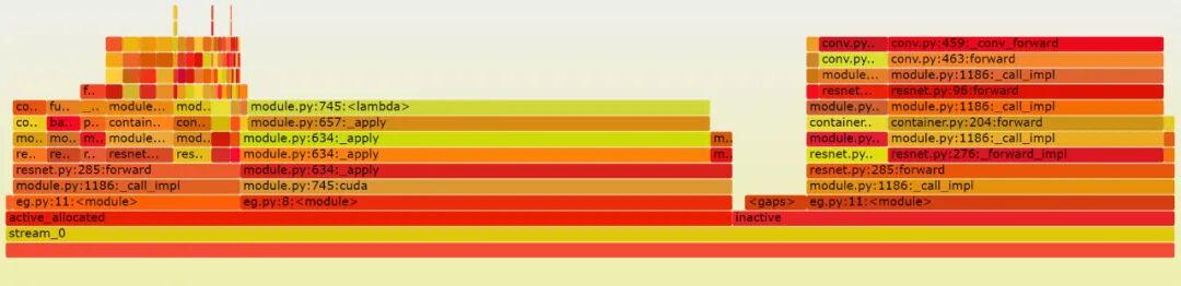 记录这些堆栈跟踪的速度非常快(每次分配约 1 us,正常的 PyTorch 内核调用需要至少 8 us),但我们默认将其关闭。而启用之后,我们可以分配一些内存并拍摄快照。