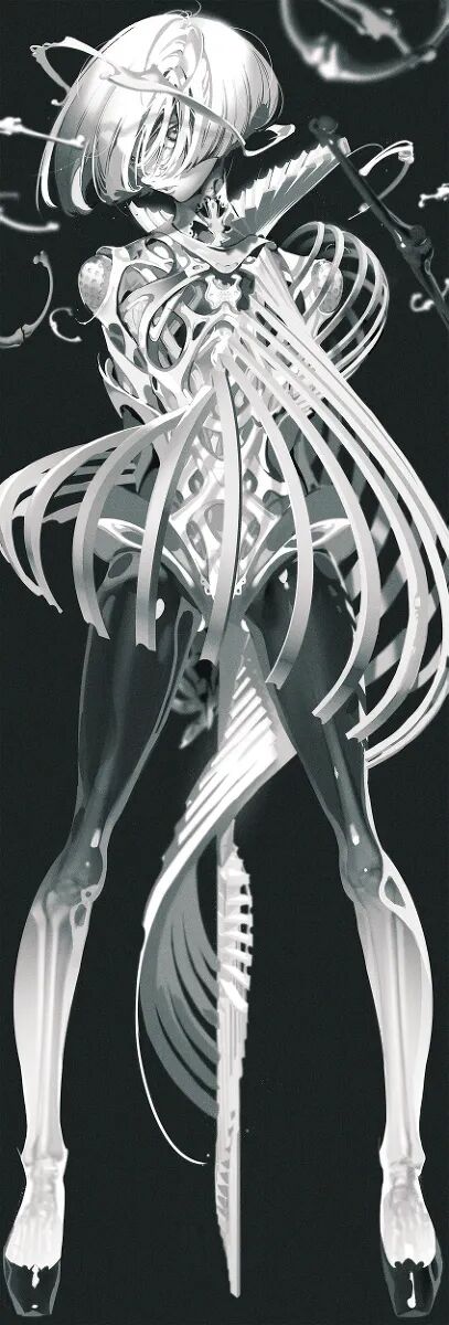 插画大多为科幻作品,专供机械和骷髅少女设定