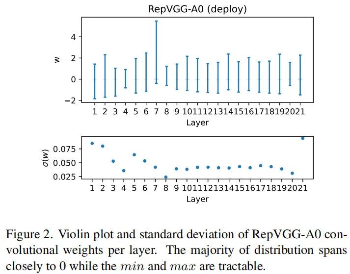 对于重参数类架构而言,它有两个主要成分(权值、激活张量)需要进行量化且均可能导致性能退化,激活张量同时还将作为下一层的输入,因此误差会逐层累积 。因此,具有好的量化性能的网络需要满足两个基本条件: