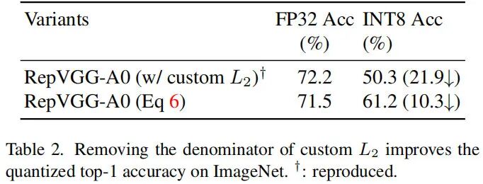 在FP32方面,所提方案取得了与RepVGG相当的精度;