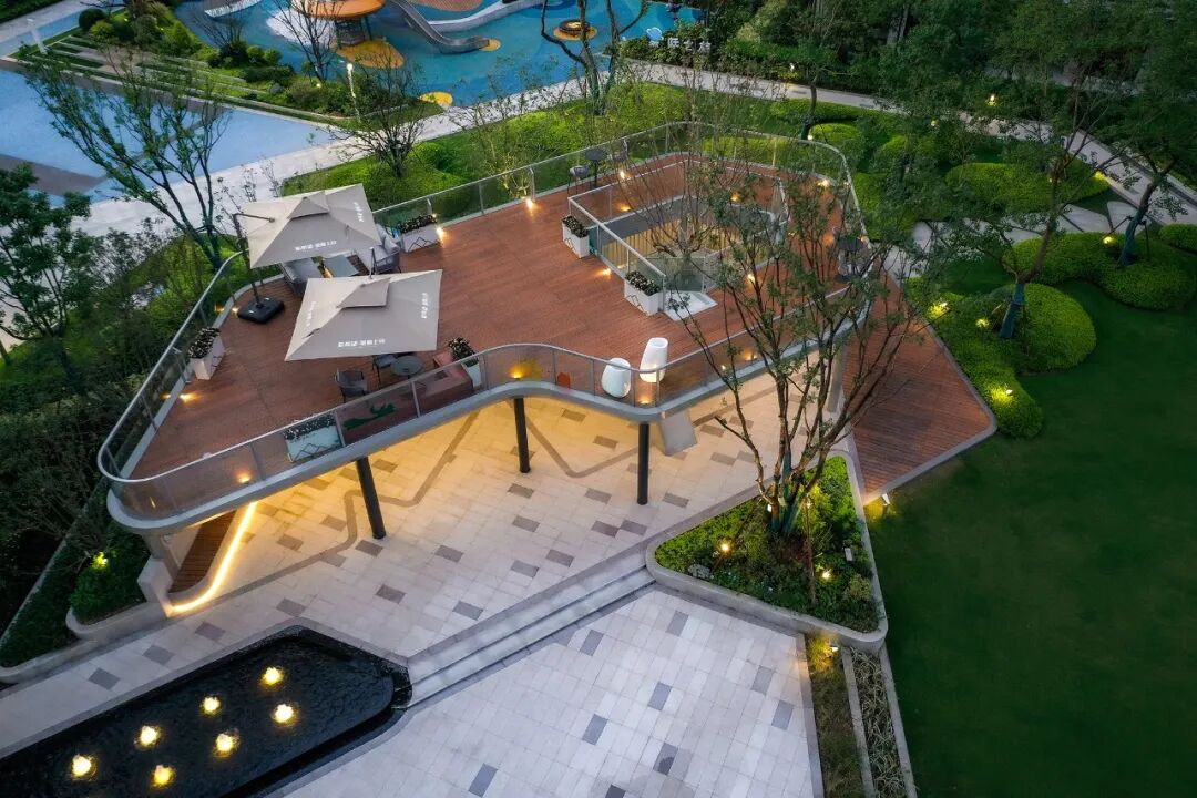 项目从设计到落地呈现历经三年,点点滴滴都是设计师对于项目的精进追求。大区亦是示范区的精神延伸,设计延续示范区的设计语言,采用折线律动的形式贯穿整个场地,衔接细碎的功能空间,保证全区语言的统一性与整体性,最大化形成互相联系的纽带。