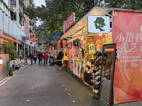 项目依托现有街巷、建筑等景观资源,运用街区美学设计理念,在产业特色鲜明、功能人性化基础上,在树池景观、地面铺装、标识标牌等装置中植入历史文化印记、主题元素,对多个店铺进行升级美化,实现“一店一招一品”“一街一世界”,塑造片区复合多样的空间场所。