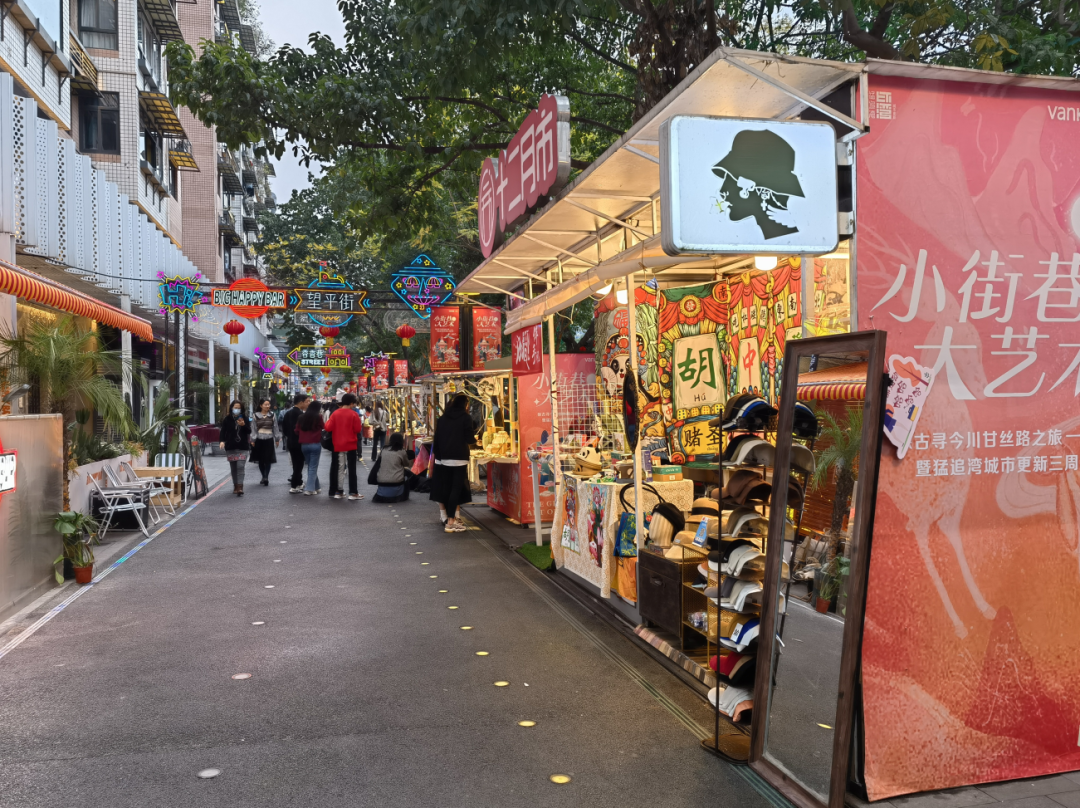 街区的业态引入大量网红店、首店,并利用街区空间的优势,开展市集活动。而且在猛追湾,市集不再是销售场所,更成为了展现猛追湾自身文化气息,与游客们产生互动的重要链接点,让游客们能够在市集中发现城市生活的烟火与百态,深度融入其中,体会到被链接的愉快。