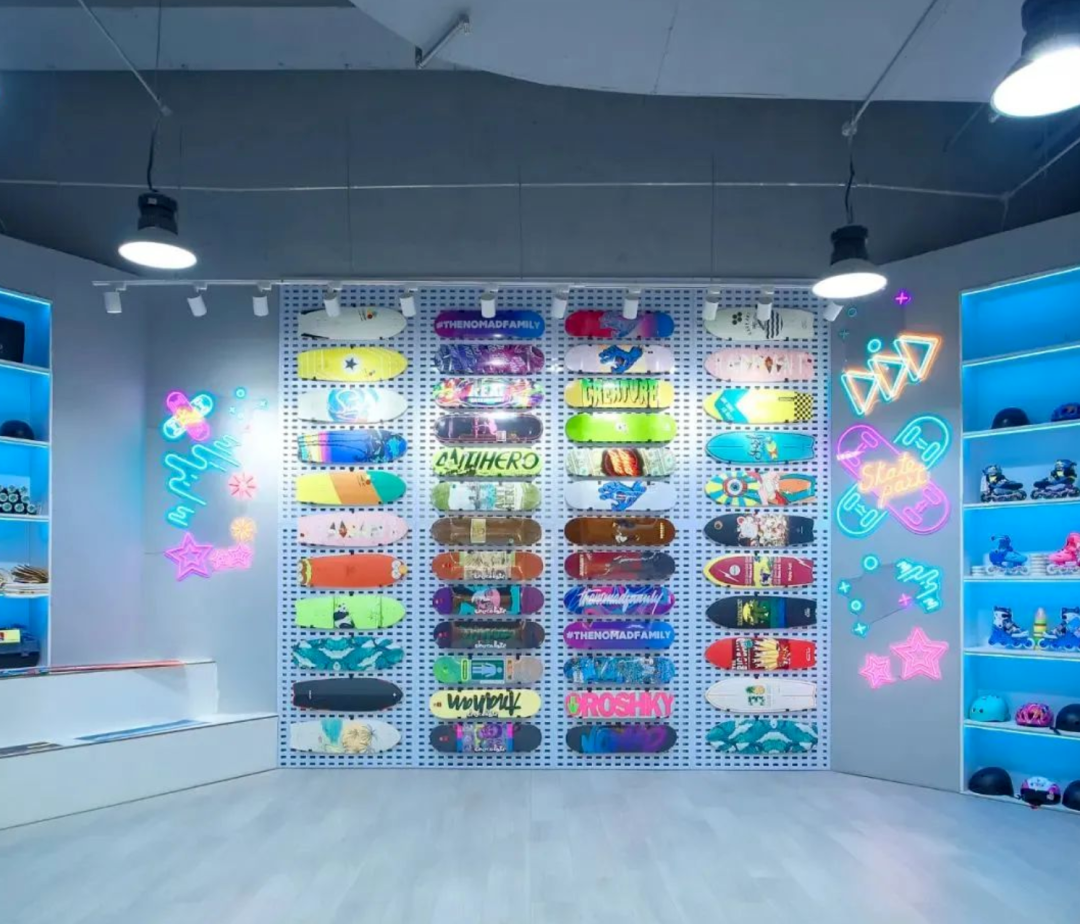 The Kite Runner是一家专注于3-12岁儿童和成人提供专业轮滑、滑板和陆地冲浪板培训的体育机构,其首家门店位于上海天空万科广场屋顶运动场地。品牌的设计灵感来自戏曲,其滑板、护具和门头都采用了鲜艳的色彩,非常具有视觉冲击力。品牌旨在为客户带来有趣的运动和社交体验,同时促进健康和快乐的生活方式。