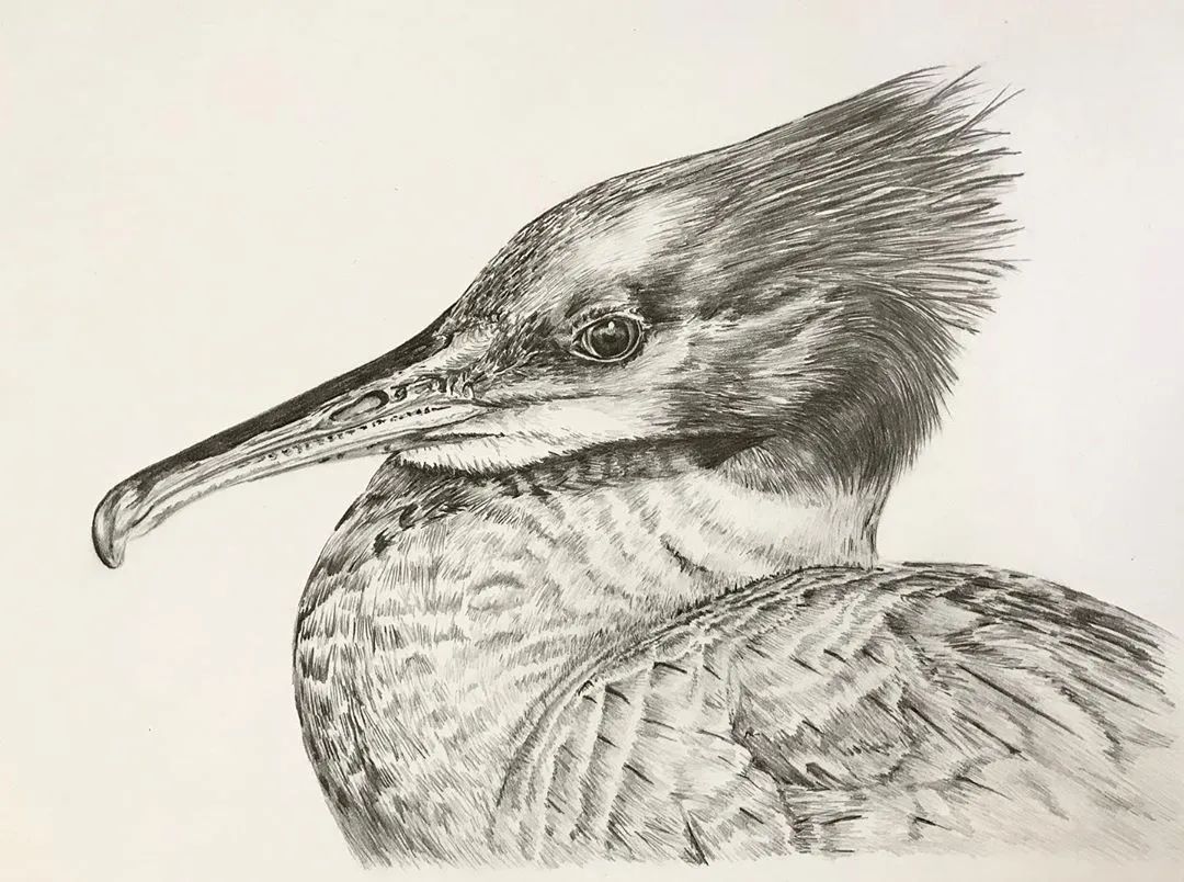 我真的很享受解密所有这些羽毛的挑战!大多数绘图是使用0.3mm自动铅笔完成的,我还使用标准2B和5B铅笔添加了更加生动的阴影。