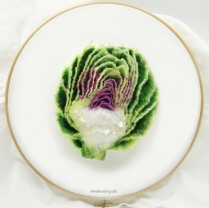 虽说许多当代刺绣艺术家大多都是西方人,不过,真正算得上精彩的刺绣作品,还要看中国的艺术家,今天要为大家介绍的这位超写实刺绣艺术家就是一位来自云南的中国女孩,她的名字叫做刘有梦(音译),这个来自云南的女孩目前定居在英国伦敦,她以食物为灵感制作的3D刺绣,被认为是突破工艺界限的创意举动,让一众外国人看“傻了眼”。
