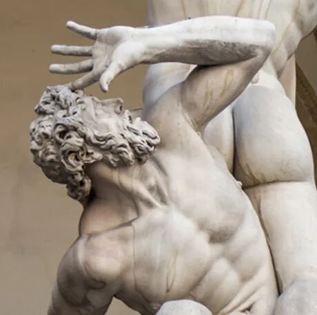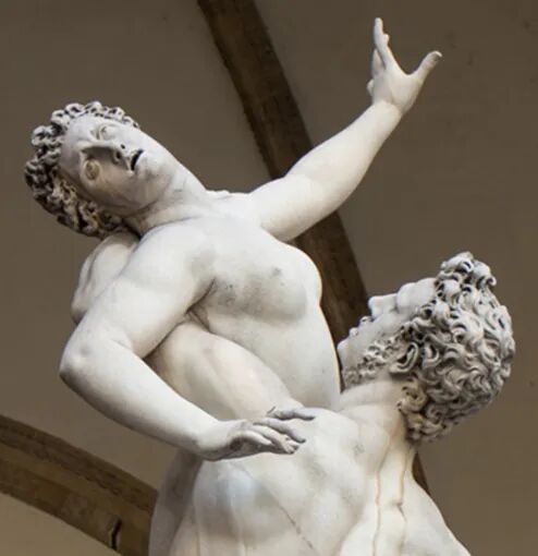 每天两分钟,赏雕塑,听艺术,大家好!今天给大家介绍由16世纪意大利文艺复兴晚期著名风格主义雕塑家詹博洛尼亚创作的大理石雕像《抢夺萨宾妇女》,收藏于意大利佛罗伦萨市政广场佣兵凉廊。