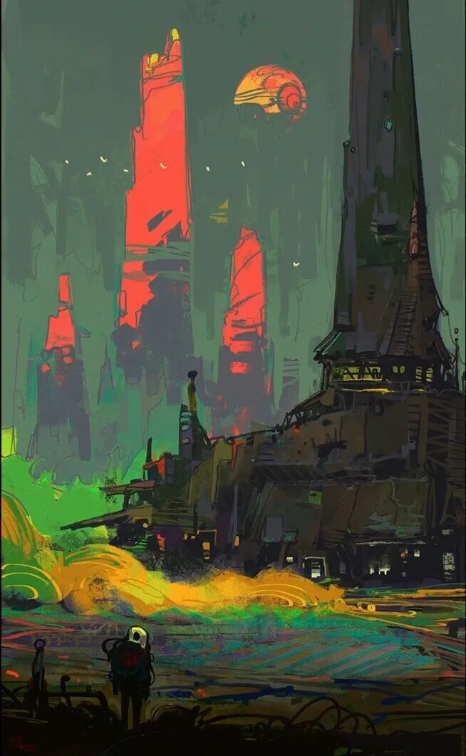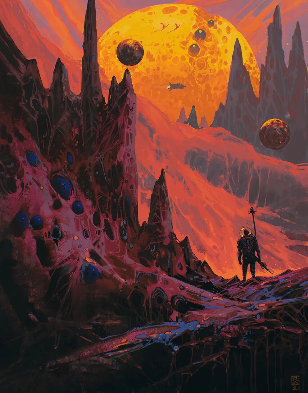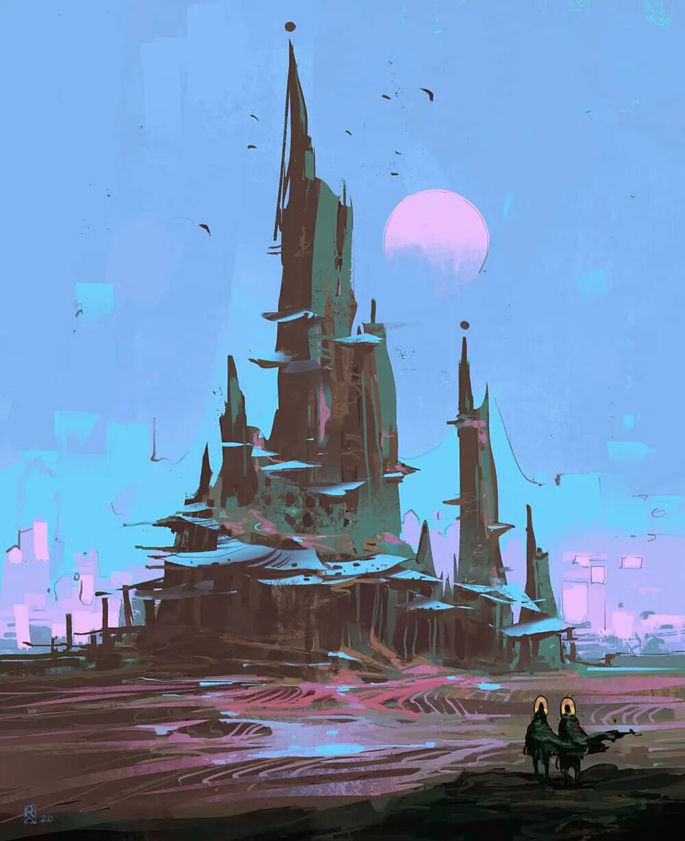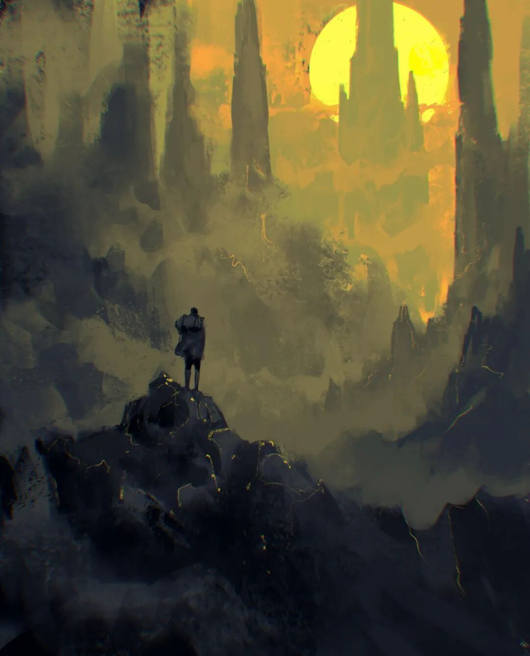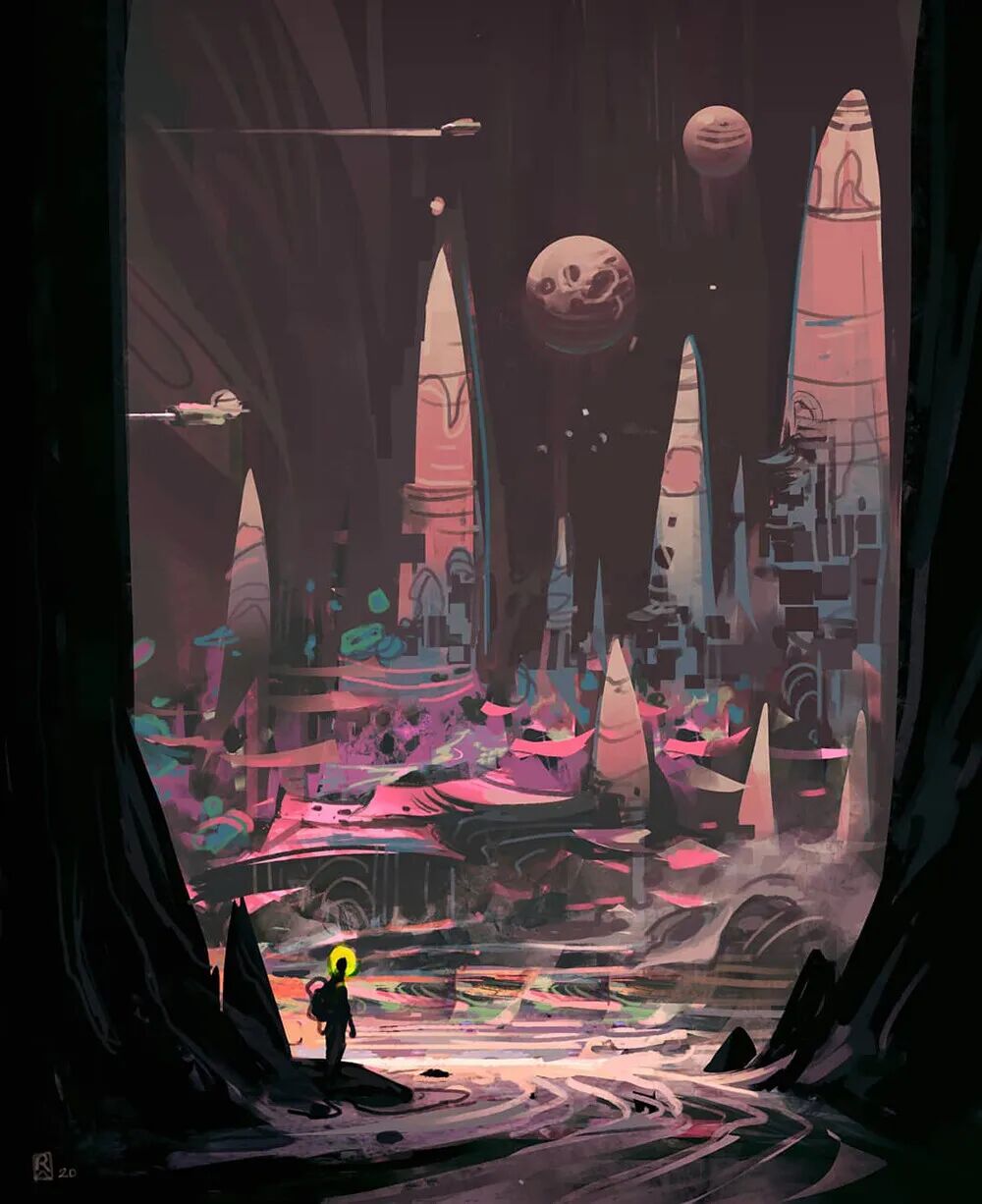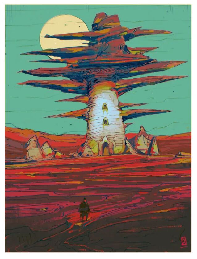 来自土耳其插画师、概念艺术家他的作品恢弘大气、奇幻瑰丽,空间塑造感强,生动的色彩和自然风光相结合,营造出史诗般的画面,氛围营造强者。
