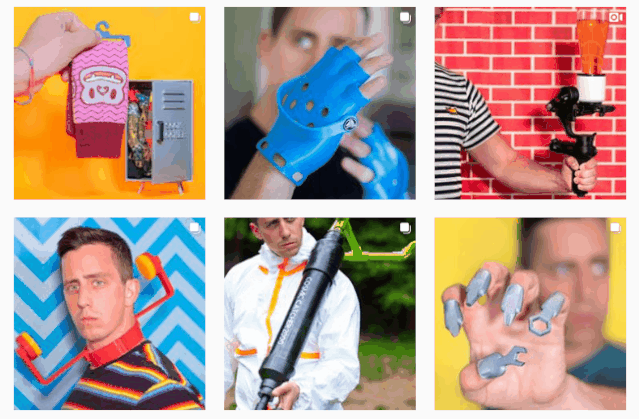 他将生活中的日常用品重新塑造,以合理但又不寻常的手法重新设计,进行建模、渲染、制作样板,制作成看似滑稽的产品,以此来抨击、讽刺当今社会下关于:死亡、战争、人际关系等方面的问题。