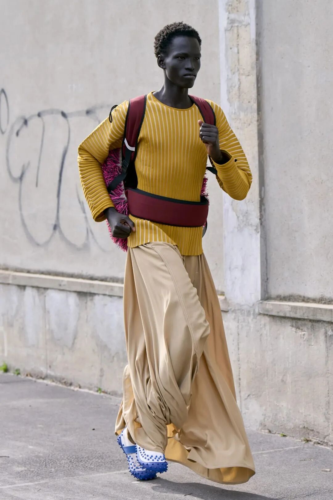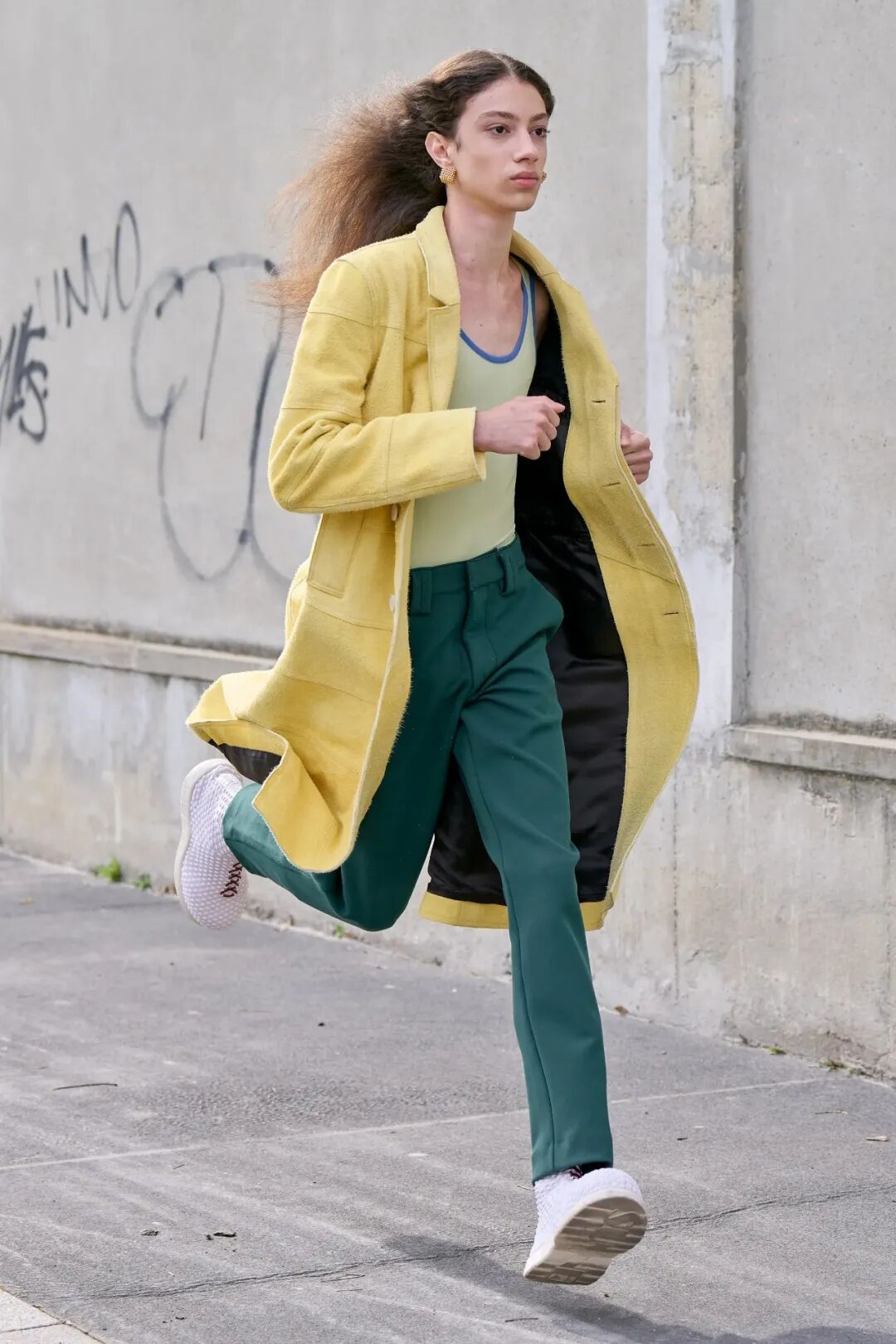 疫情下,时尚界一直以来保持的快节奏却并没有被放缓,从一个实体秀场跑到另一个实体秀场已经成为常态,所以这次Sunnei在米兰郊区的一个露天秀场,他们干脆让模特们全跑起来了!